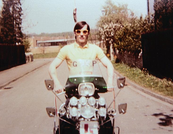 In thespringof1978, it finally happened, andhavinginvested£60 of hissavings,hewas theproud ownerofa GP125. Notonlythat, it also had12monthsoftax anda validMoT, so with abit of insurance, therecould be no more backlash from thelocal constabulary He soon beganclockingupthe milesonit, andthisnew foundfreedom allowedhim to immersehimself in thescooter scene. First offwas aclub, andheand afew otherlocal scooteristsset up theOxfordRoadrunners, whichhefollowedupwithmembershipof the