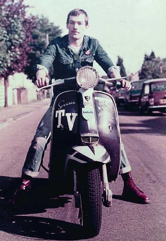 appealing. As a13-year-old,MarkSargeant looked up to thelocalswho profferedthismuch smar terlook, eventually beingadopted by them andregardedastheir mascot.Herevelledinthe attention, andone of thereasons he likedbeing included wasbecause of thescooters. Most of theSuedeheadshad skellies or cutdowns