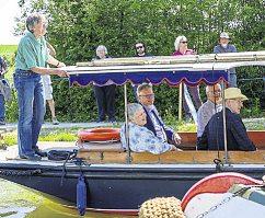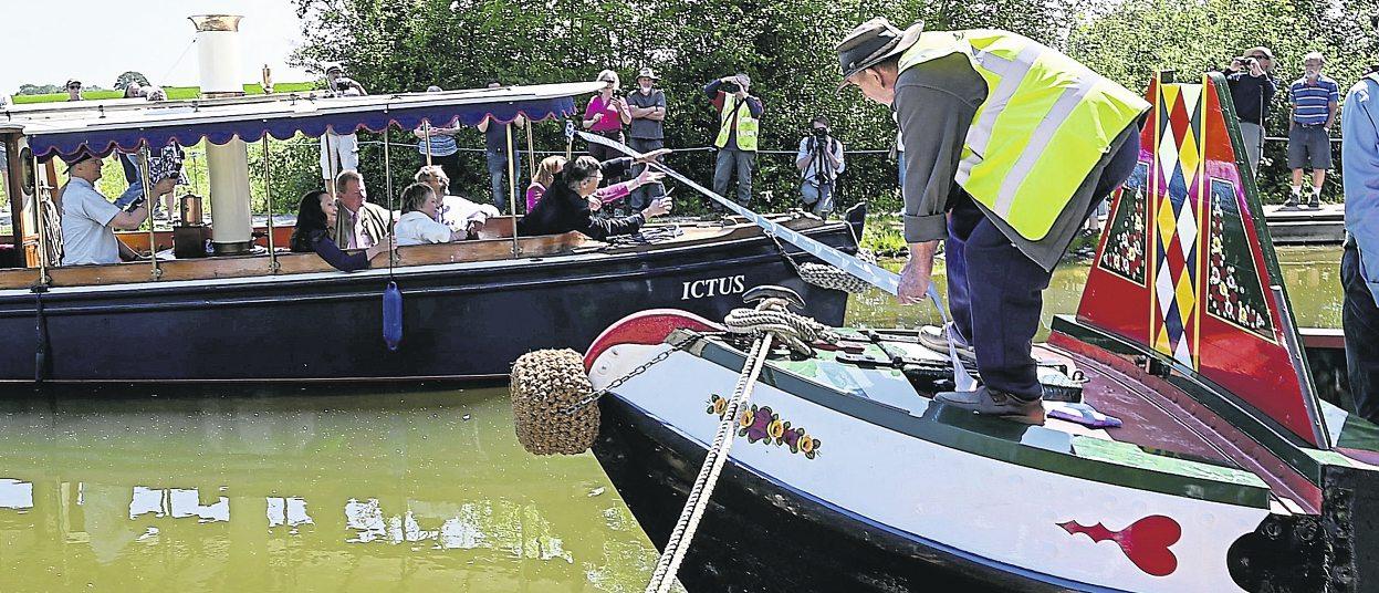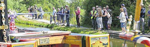 Ictus arrivesatCrickheathBasinwithagroupofVIPguestsfortheofficialribboncuttingceremonytoformallyre-opentherestored basinontheMontgomeryCanal.Turntopage10forreport,morepicturesandnewappealforfunds.