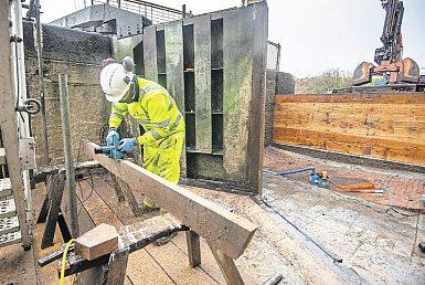 EntryisviatheNorthTower,which takesyoutothe rstwalkwayviaaseries ofstepswithinformationboardsalong theway,tellingthehistoryofthebridge andthestoriesofthehugeandvaried workforce–whichincludeddivers,steel workers,stonemasons,rivetinggangs, stokers,watchmen,signalmen,navvies andgatemen,aswellaschildlabourers. ereisalsoareconstructionofthe siteo ce,showingJohnWolfeBarry indiscussionwithengineerGeorge