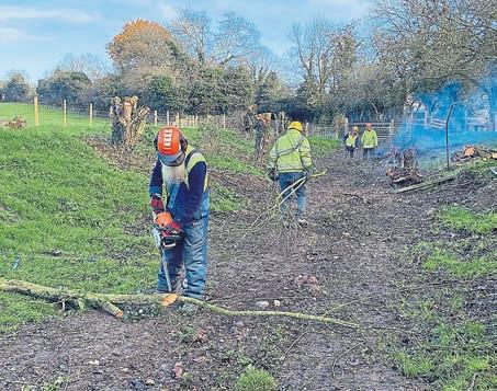 Mostofthehourshavebeenfocused ontherewateredstretchbetween PewshamLocksandDoubleBridge wherethecharityisrebuildingawaiting wall,drydockandotherstructures,and atnearbyGreenLaneFarmwhereteams havebeenclearinganothersectionof recentlyuncoveredcanal.