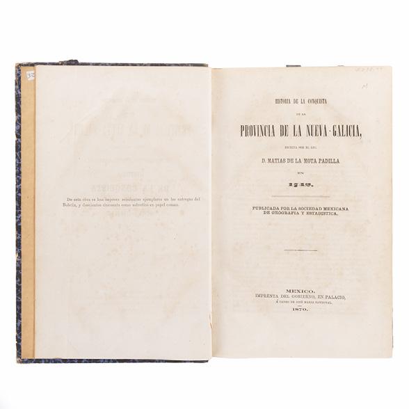 4o. marquilla, XXVI + 486 + mapa (Altimétrico de la República Mexicana, plegado); 482 - 1280 p. Tomos I - II. Firmado y dedicado por Joaquín Cortina Goribar. Edición de 3,000 ejemplares. Conserva cubiertas originales. Encuadernados en pasta dura. Piezas: 2.
