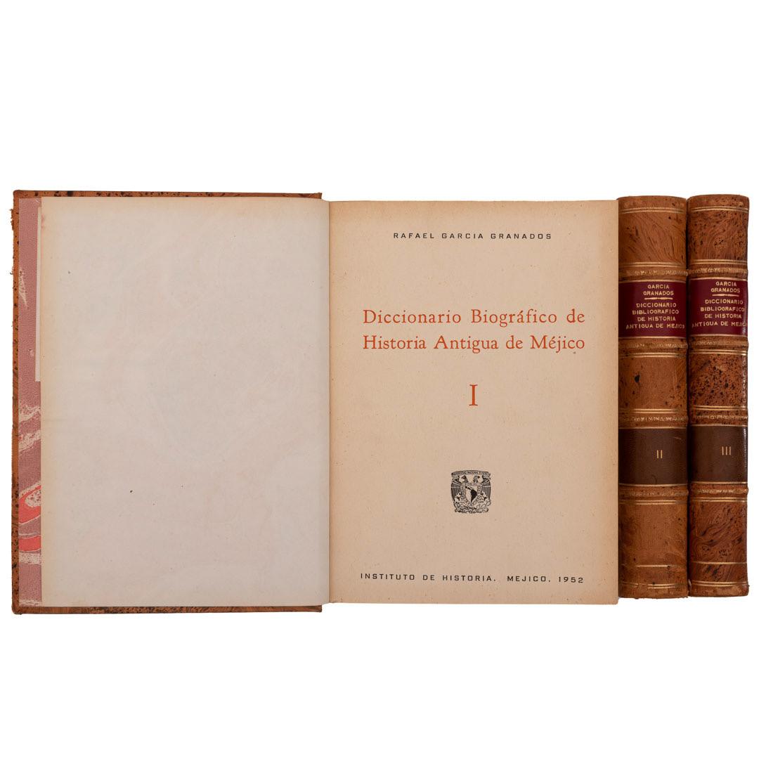 El catálogo inicia con una pequeña, pero interesante sección de fotografía en la que incluimos obras raras como el lote 4, se trata de una foto postal del retrato de Luis García Pimentel, uno de los más grandes bibliógrafos de México, firmada. En el apartado de historia de México, organizamos de manera cronológica las obras incluidas, iniciando con algunos facsimilares de códices (lotes 9 - 12), y obras de estudios antropológicos de las culturas prehispánicas de México (lote 14).