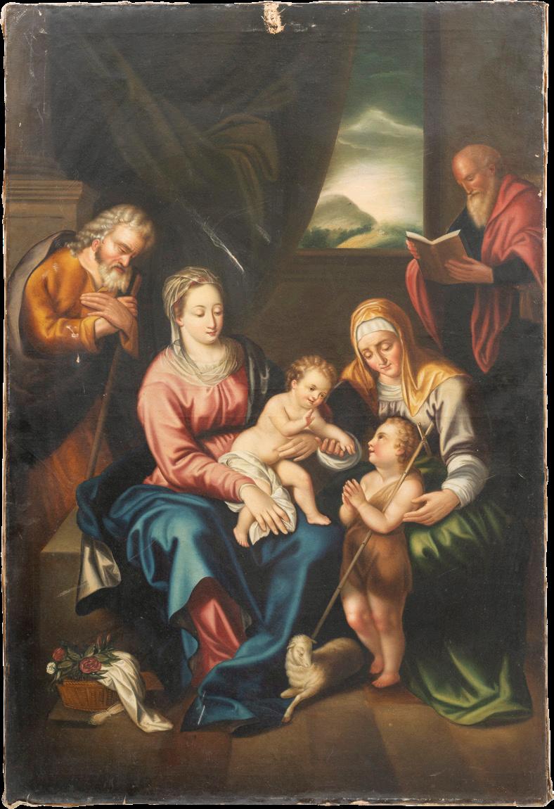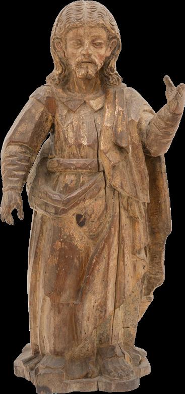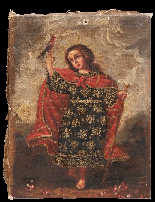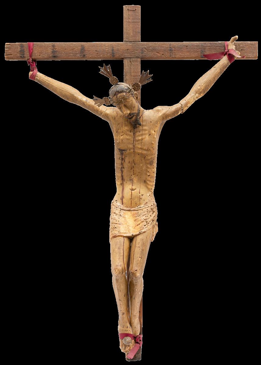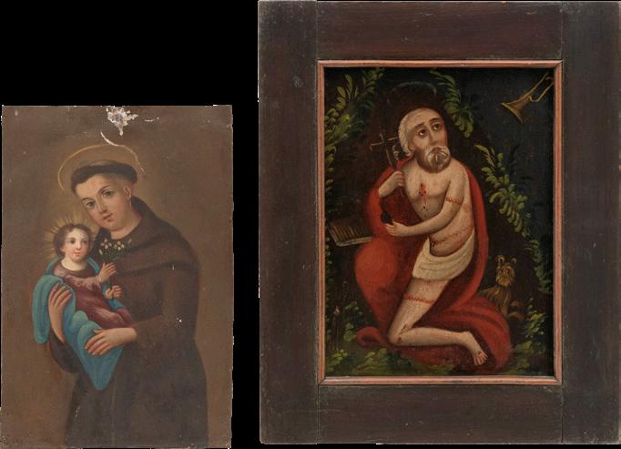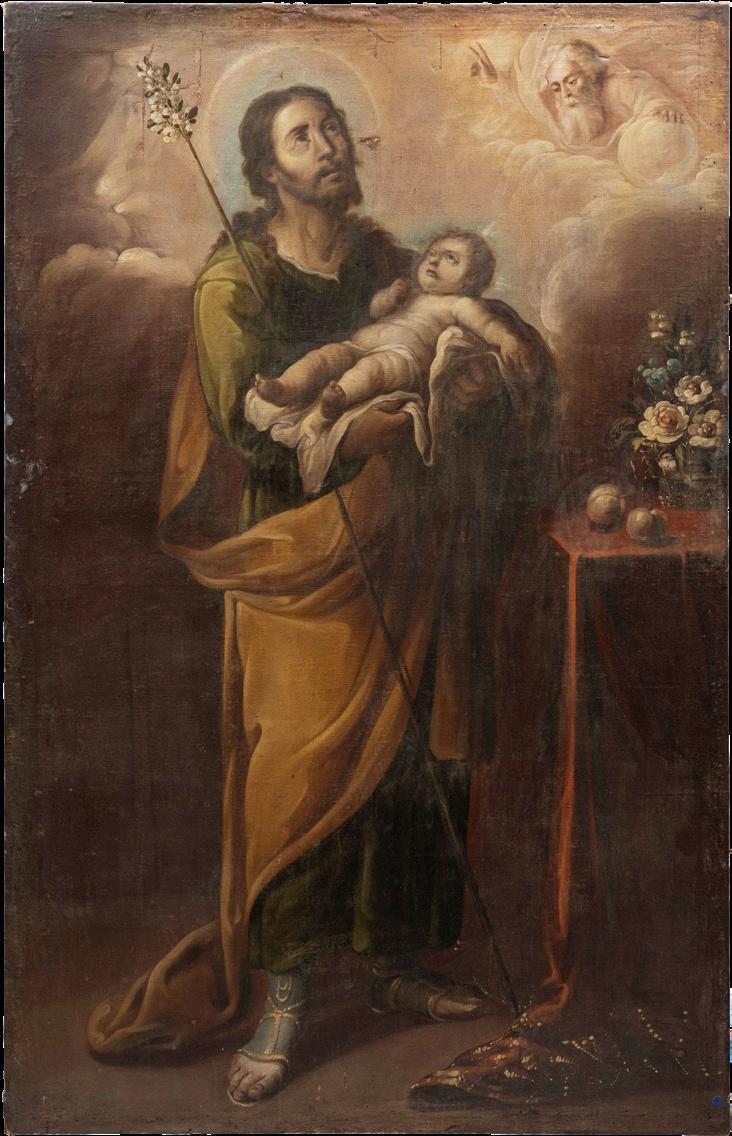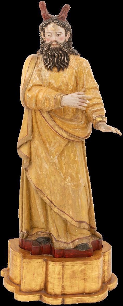 Iniciando con la sección de pintura religiosa destacan piezas de gran formato como “San José con el niño Jesús” (lote 1) y “El Lavatorio” (lote 4). Mientras que en la sección de Arte Sacro, se encuentra una particular representación de “Moisés” (lote 18) y un “Cristo Crucificado” (lote 13), piezas de origen Méxicano.