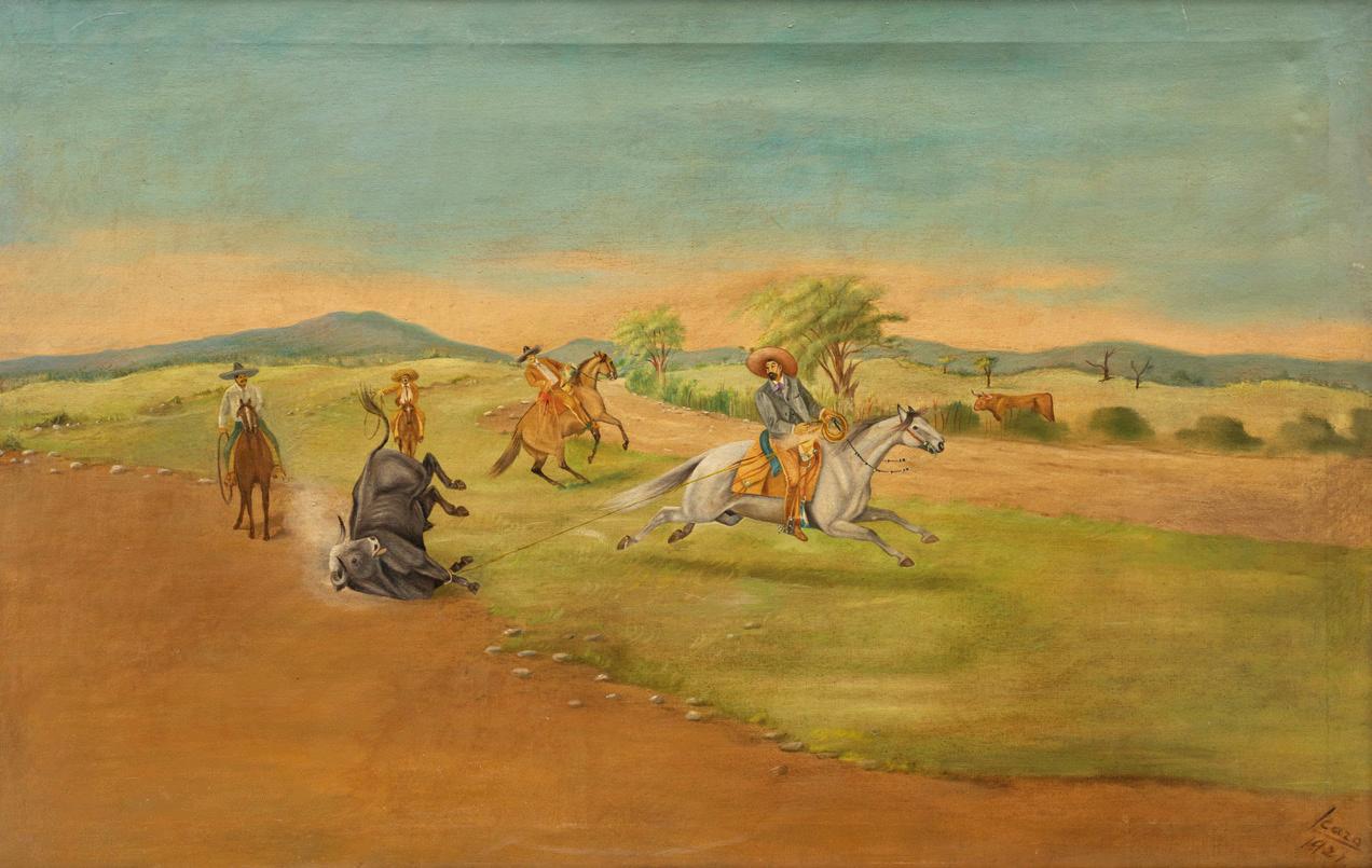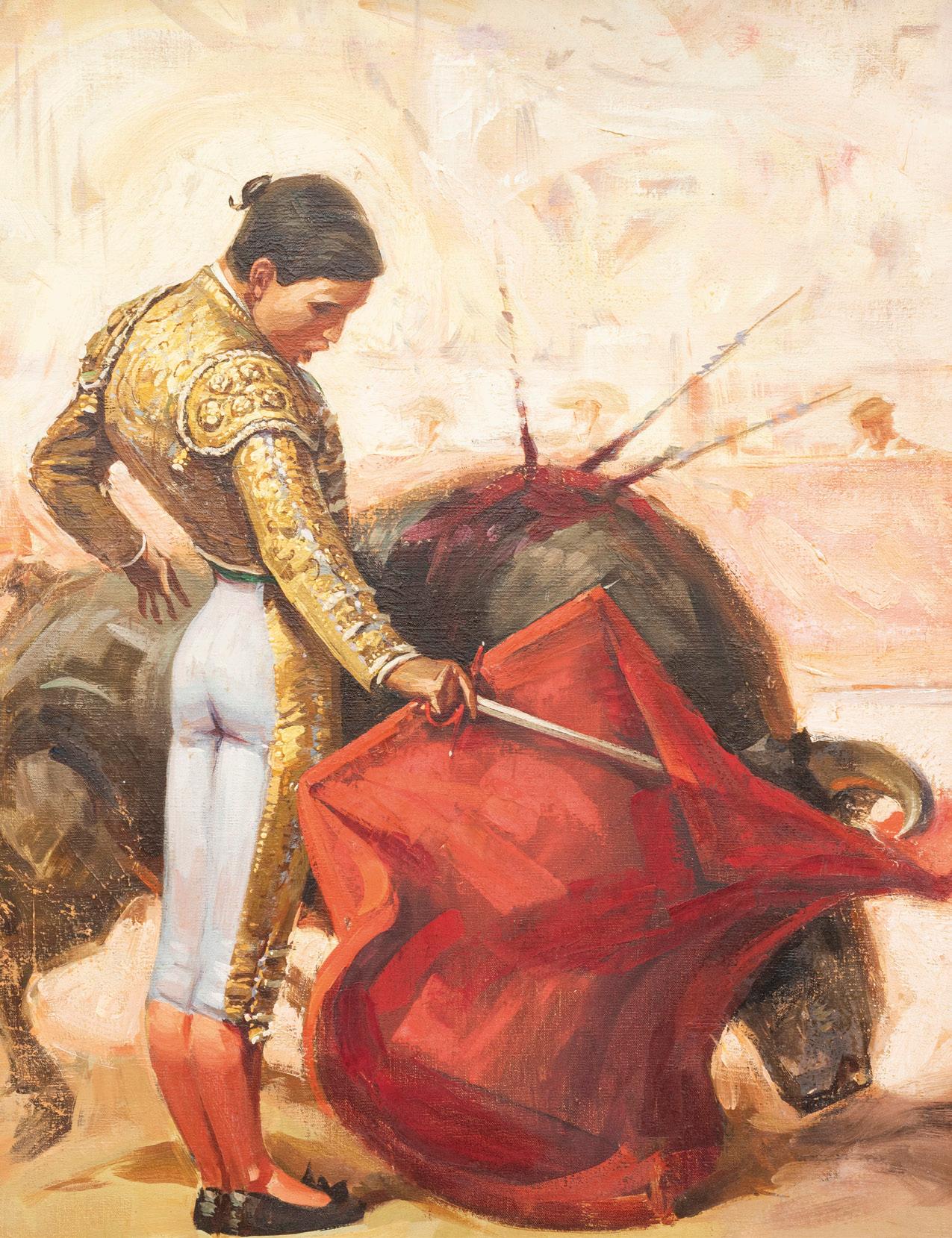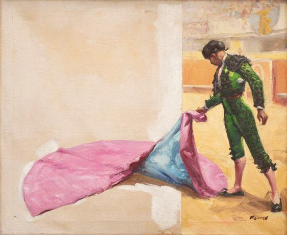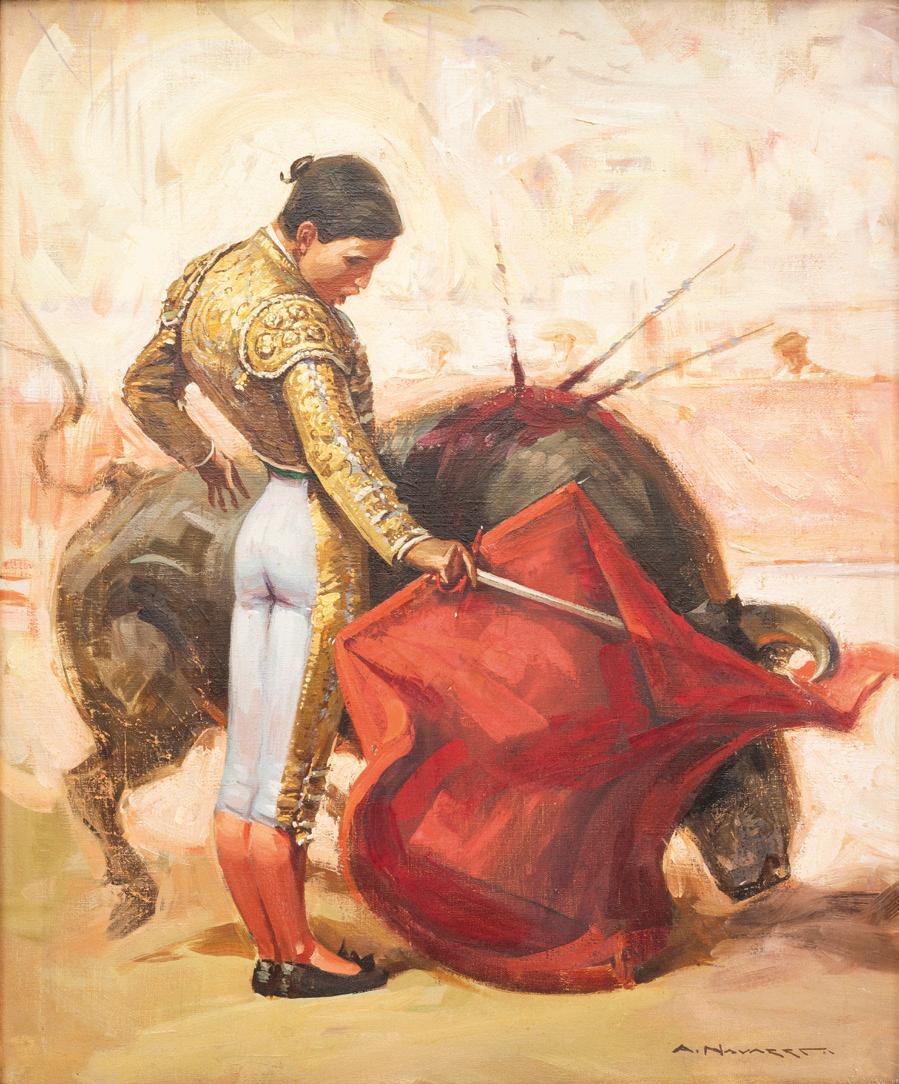 Continúa la sección de Paisaje, Pintura Costumbrista y Retrato con obras sobresalientes del pincel de artistas como Paul Fischer (lotes 225 a 230), Felipe Santiago Gutiérrez (lotes 246 y 247), Germán Gedovius (lote 220), José Navarro (lote 240) y Carlos Ruano Llopis (lotes 231 a 233); artista que también cuenta con pinturas en la sección de Tauromaquia, que inicia con la destacable escena “Lanzando al toro” del pintor Ernesto Icaza (lote 252) seguido por el “Pase de muleta por Eloy Cavazos” inmortalizado por Antonio Navarrete (lote 259).