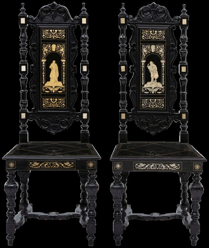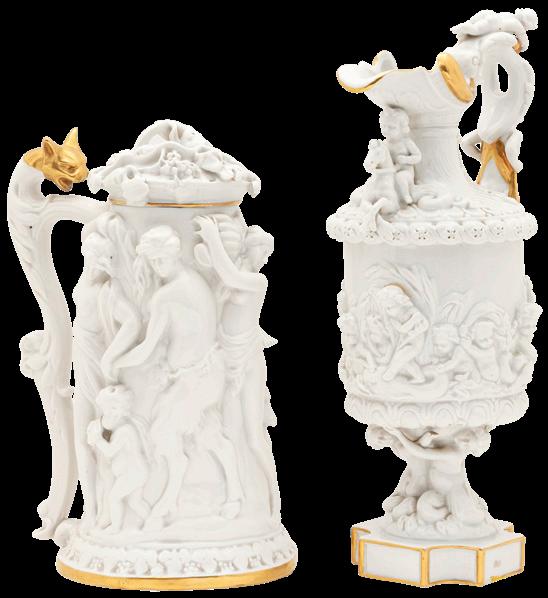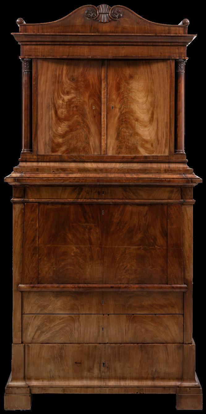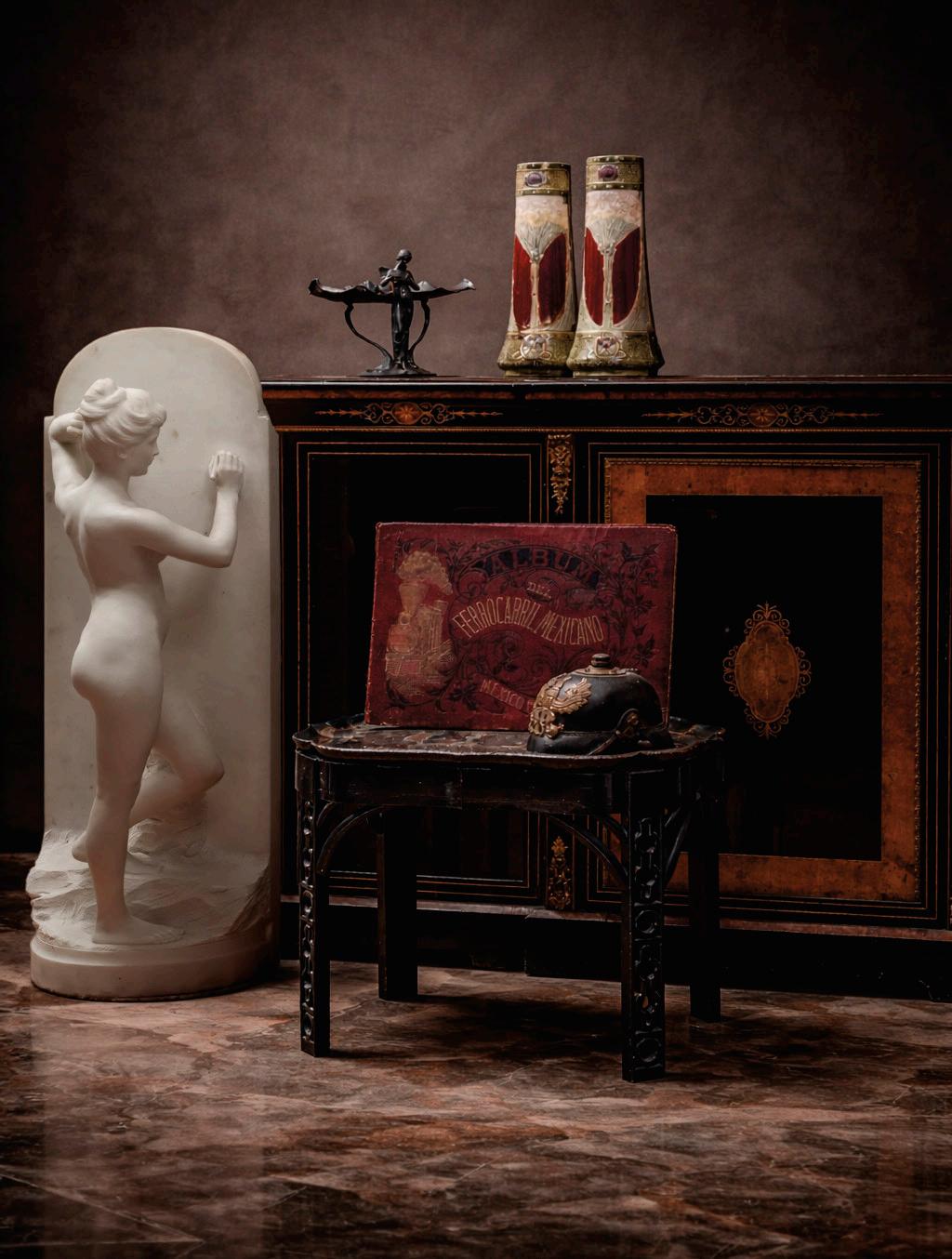 Las artes decorativas muestran el pulso de la vida cotidiana y el refinamiento estético de distintas épocas, en su mayoría se pueden encontrar piezas de origen europeo, como la “Alegoría de la Historia” de Alfred Boucher (lote 25), jarrones, tibores y espejos en porcelana alemana y francesa, (lotes 21 a 24 y 26) y piezas de orfebrería como candelabros (lote 40 a 42). De la misma manera, el apartado de Mobiliario contiene variedad de escritorios secreter, armarios y juegos de sillas realizados en tierras europeas.