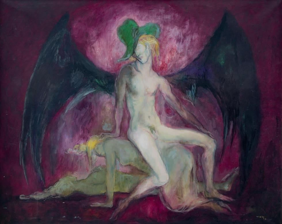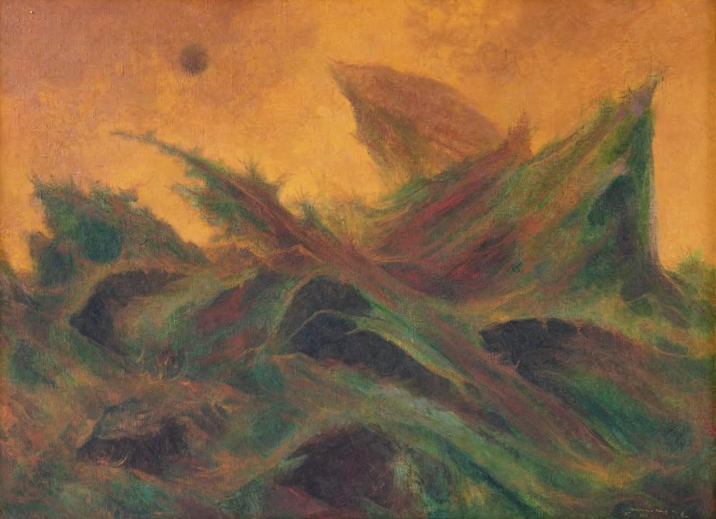 ENIGMA IN RED Firmado y fechado 74 al frente. Firmado al reverso Acrílico sobre tela 80 x 60 cm Presenta mínimos detalles de conservación.