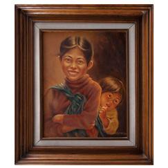 Pareja con flores Firmado y fechado 1932 Óleo sobre masonite