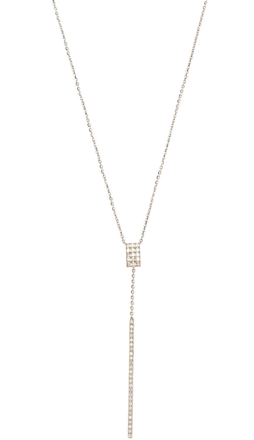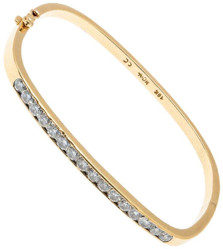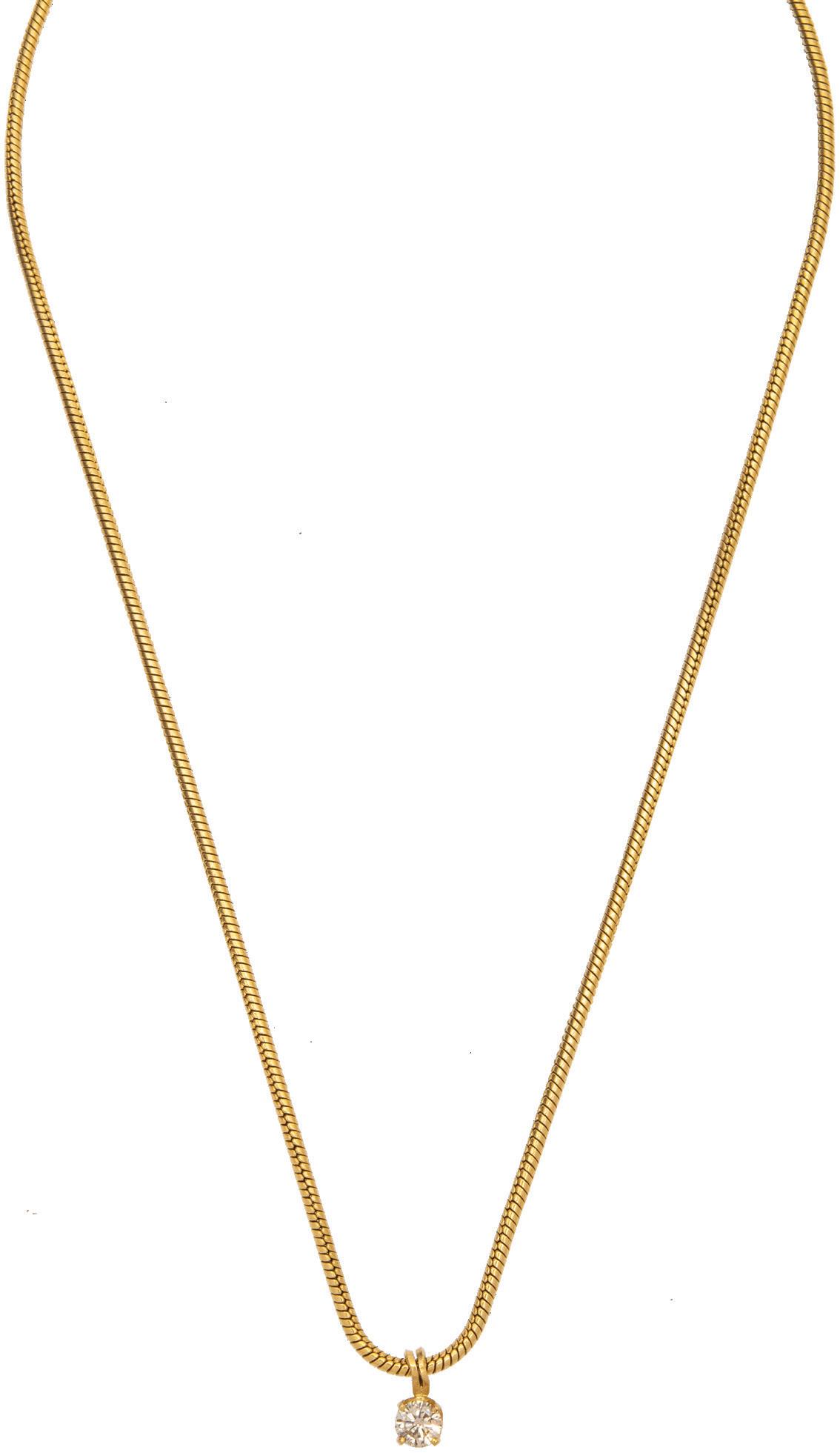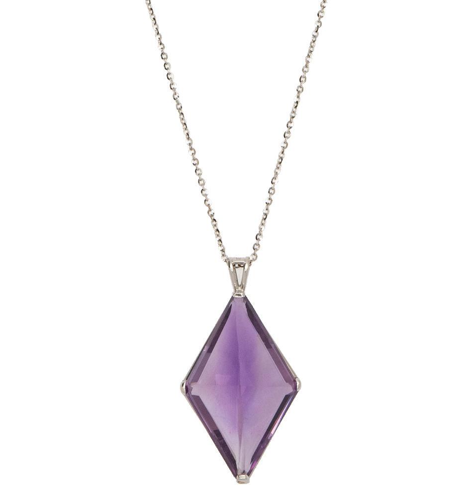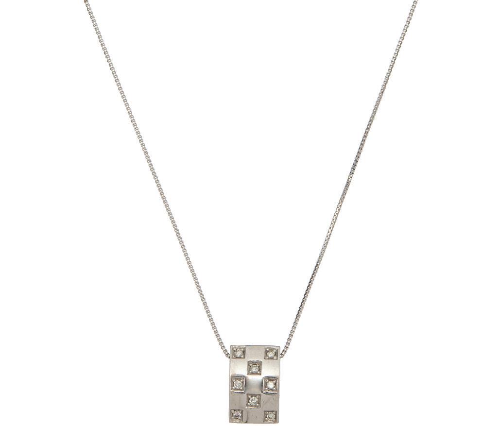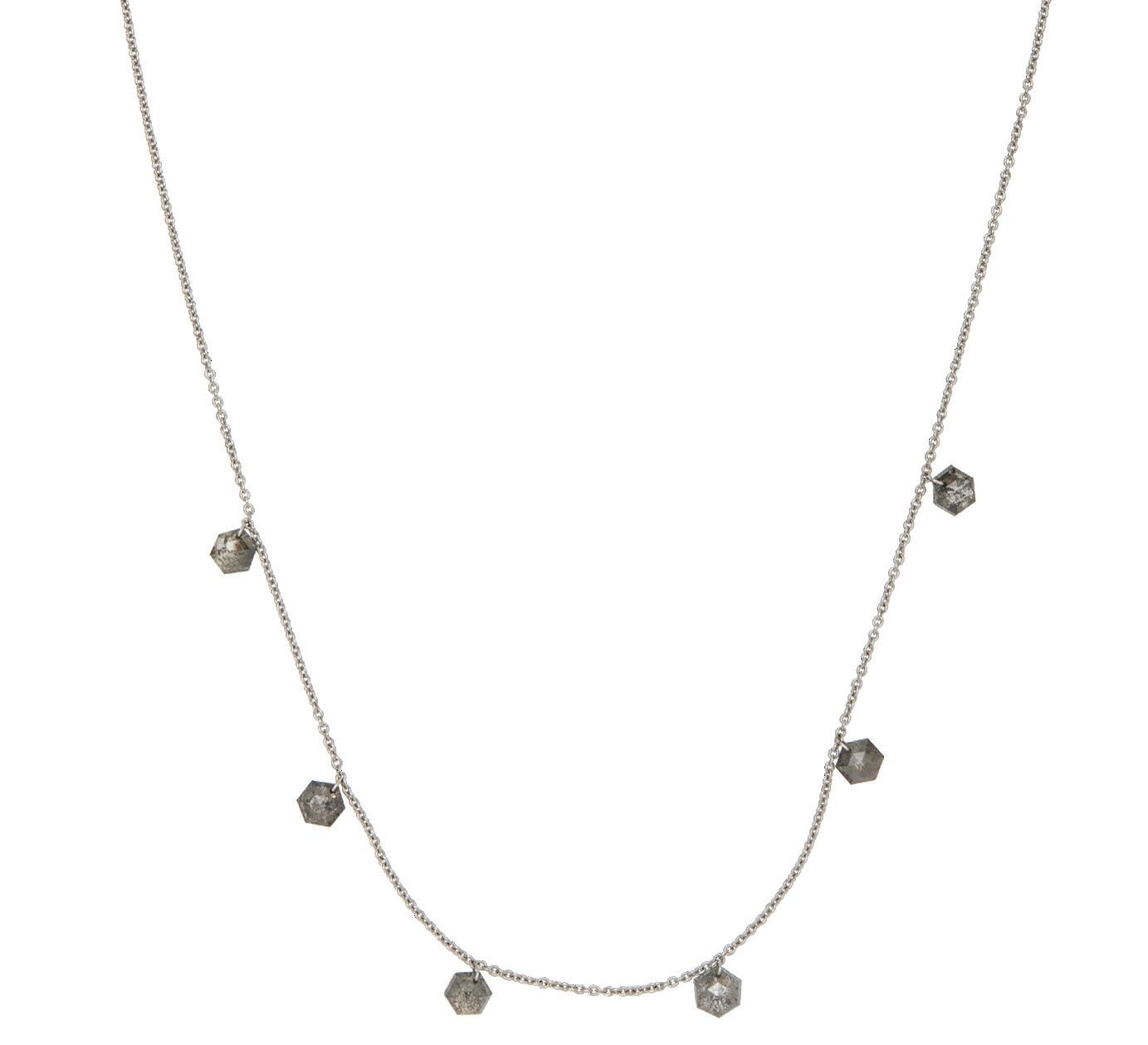 Broche de mosquetón. Peso: 1.8 g. Largo: 45.2 cm aprox. Diamantes corte hexagonal ~2.0 ct (uno fracturado)