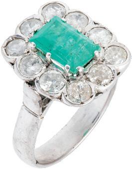 7• ANILLO CON TURMALINA Y DIAMANTES EN ORO BLANCO DE 18K