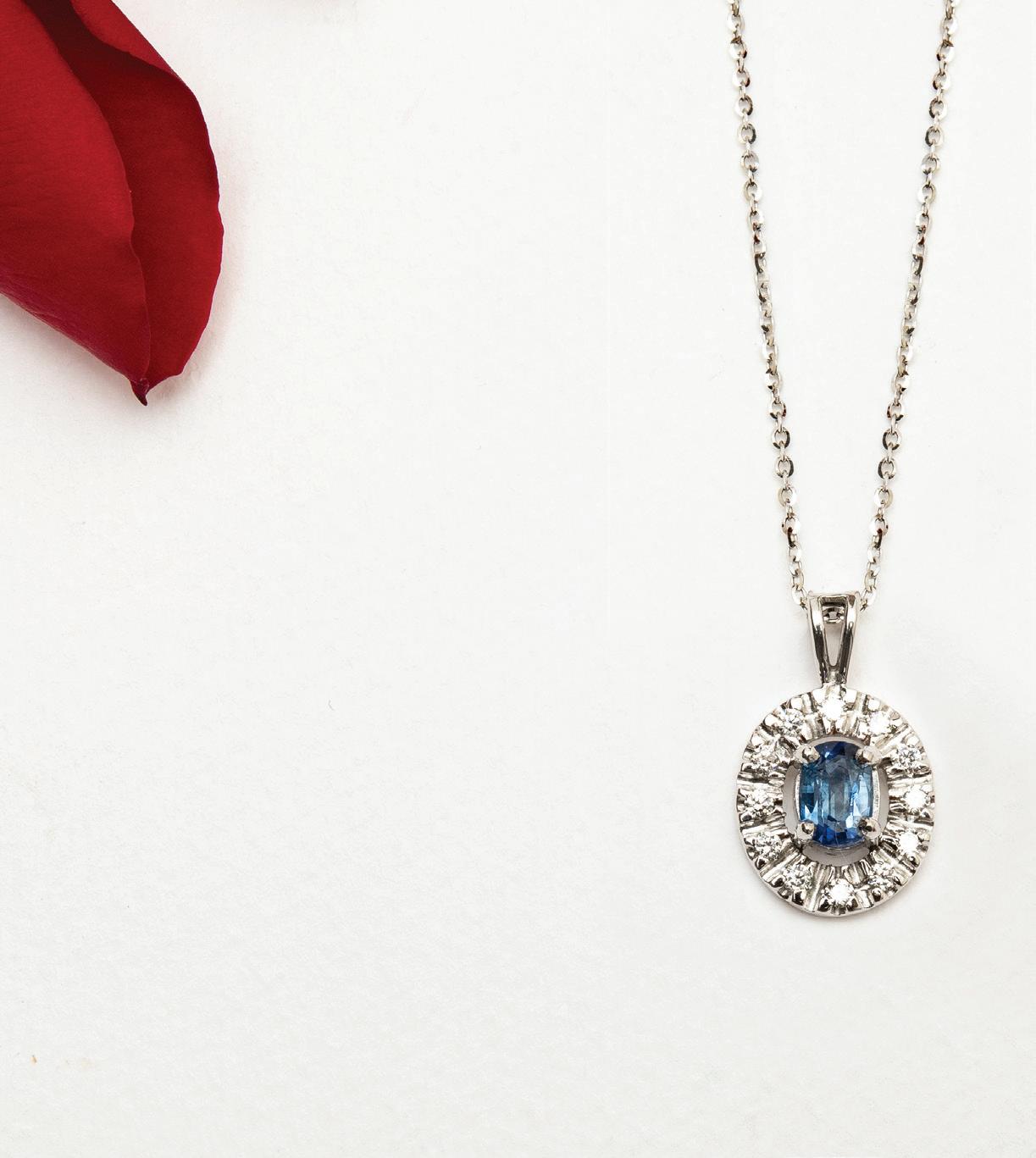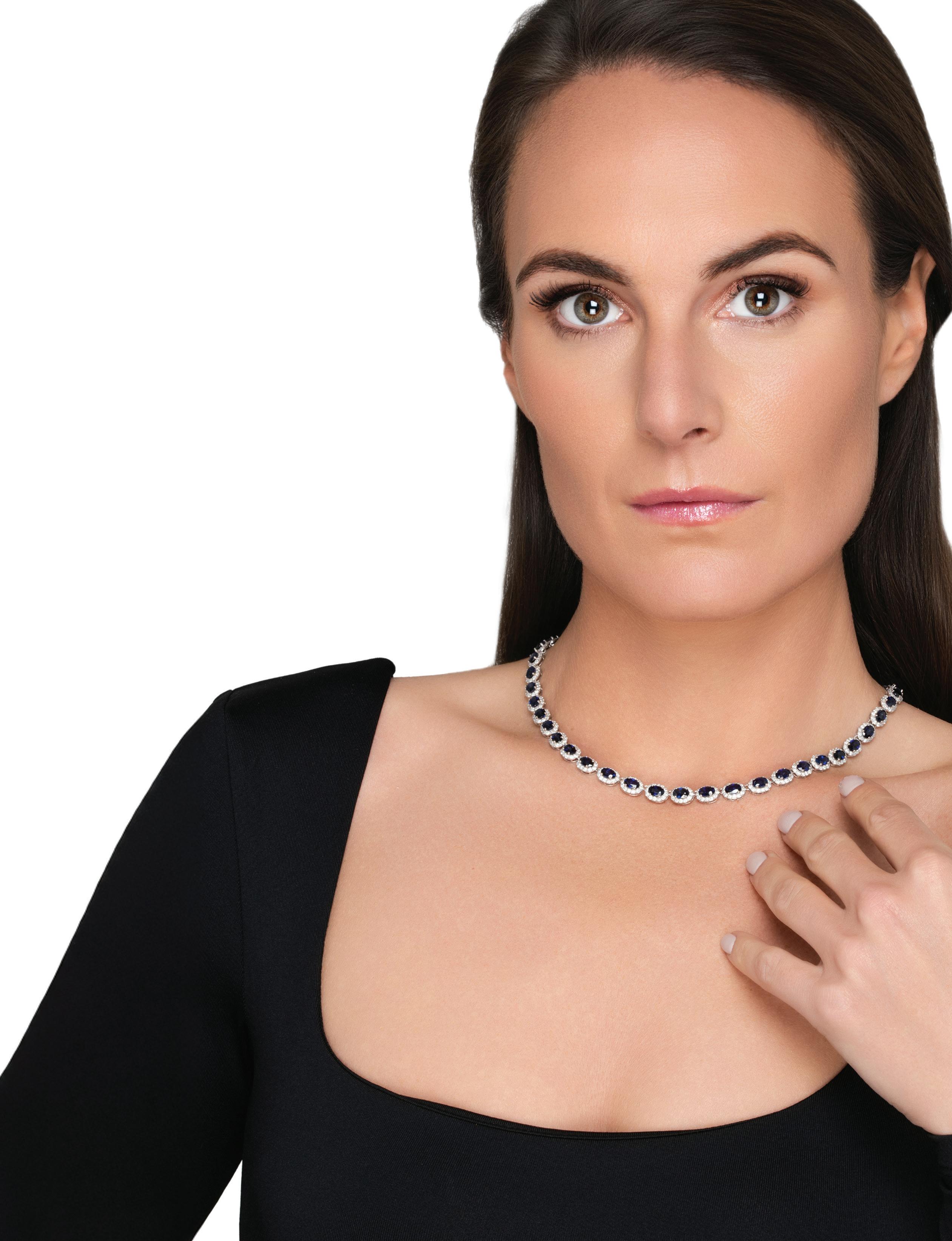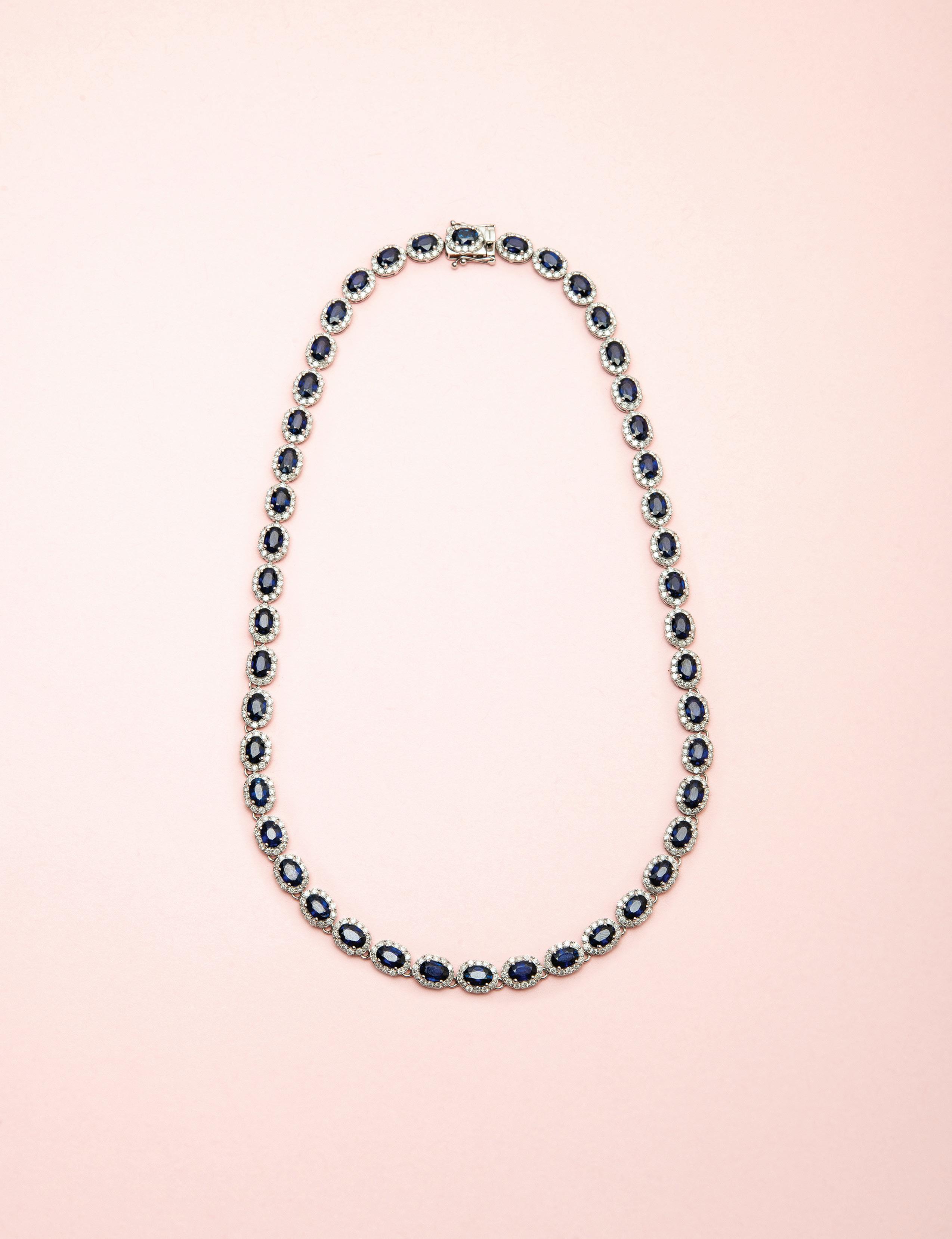 5• GARGANTILLA CON DIAMANTES AZULES SINTÉTICOS Y DIAMANTES EN ORO BLANCO DE 14K