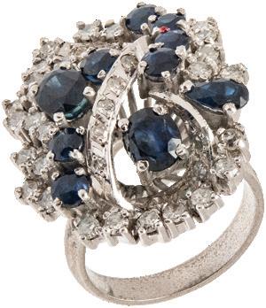 6• CHURUMBELA CON ZAFIROS DE COLORES EN ORO BLANCO DE 14K