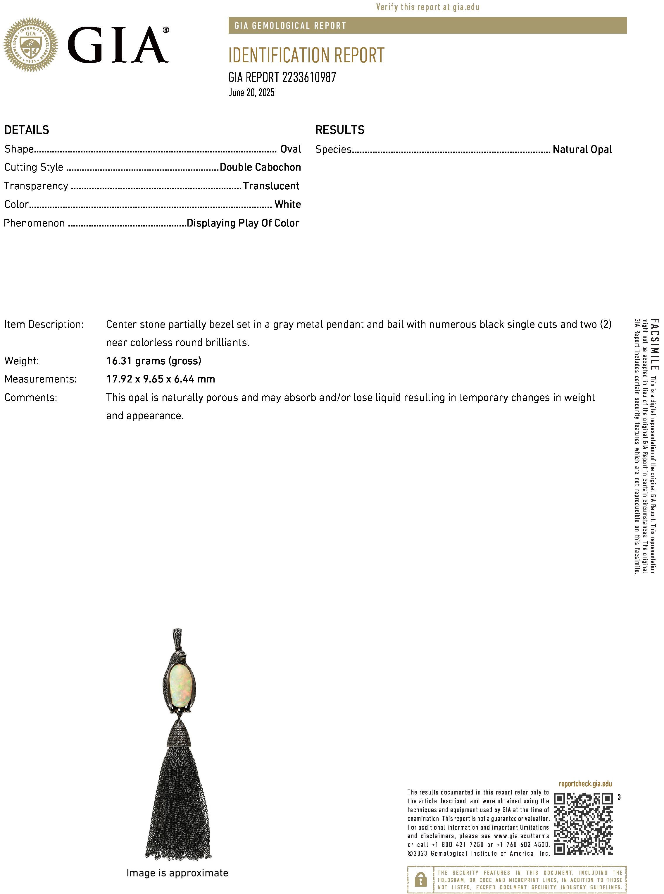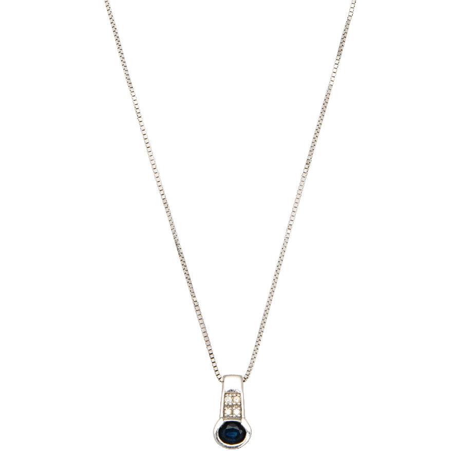 Gargantilla con broche de reasa. Largo: 46.0 cm aprox. Pendiente con pasa cadena integrado.