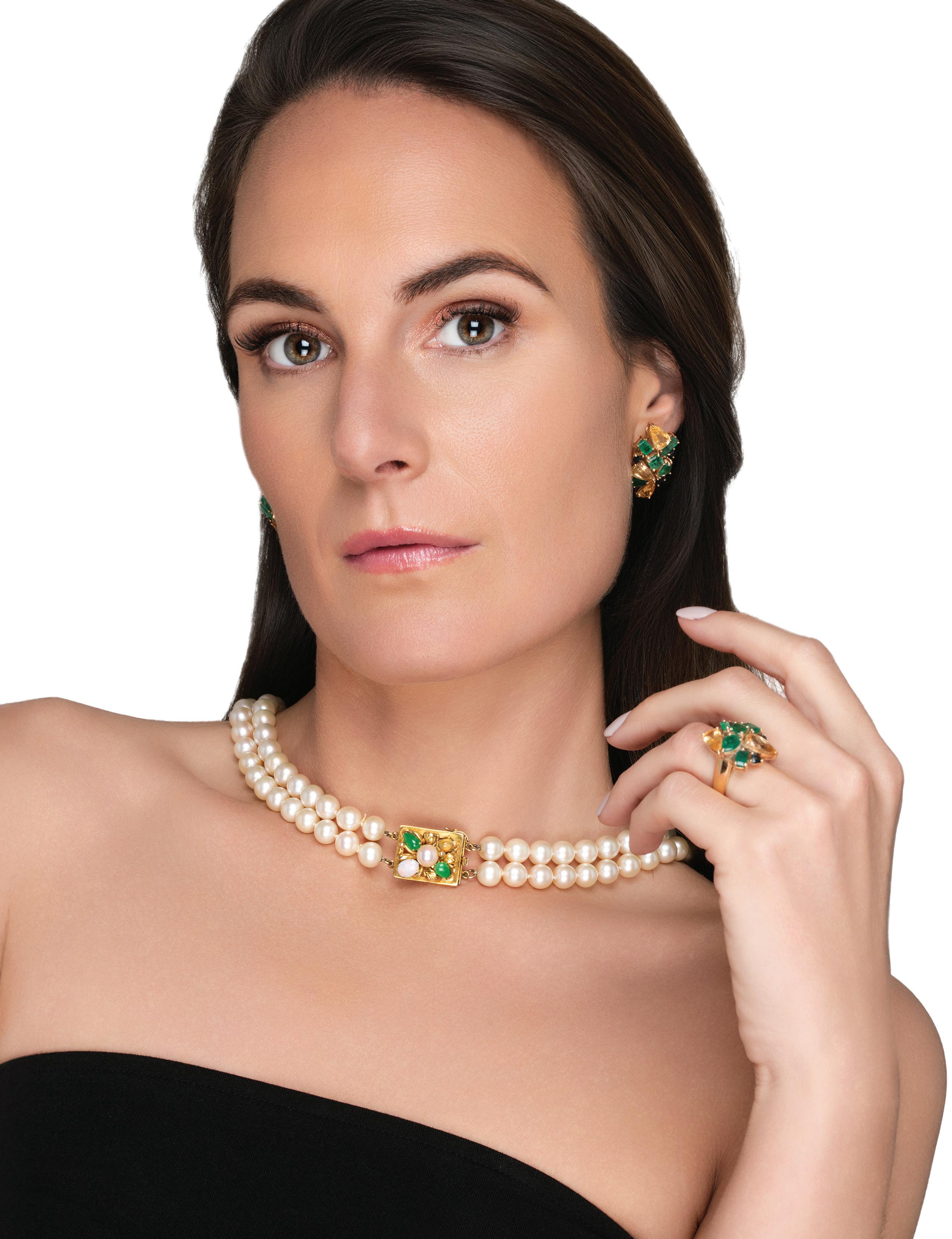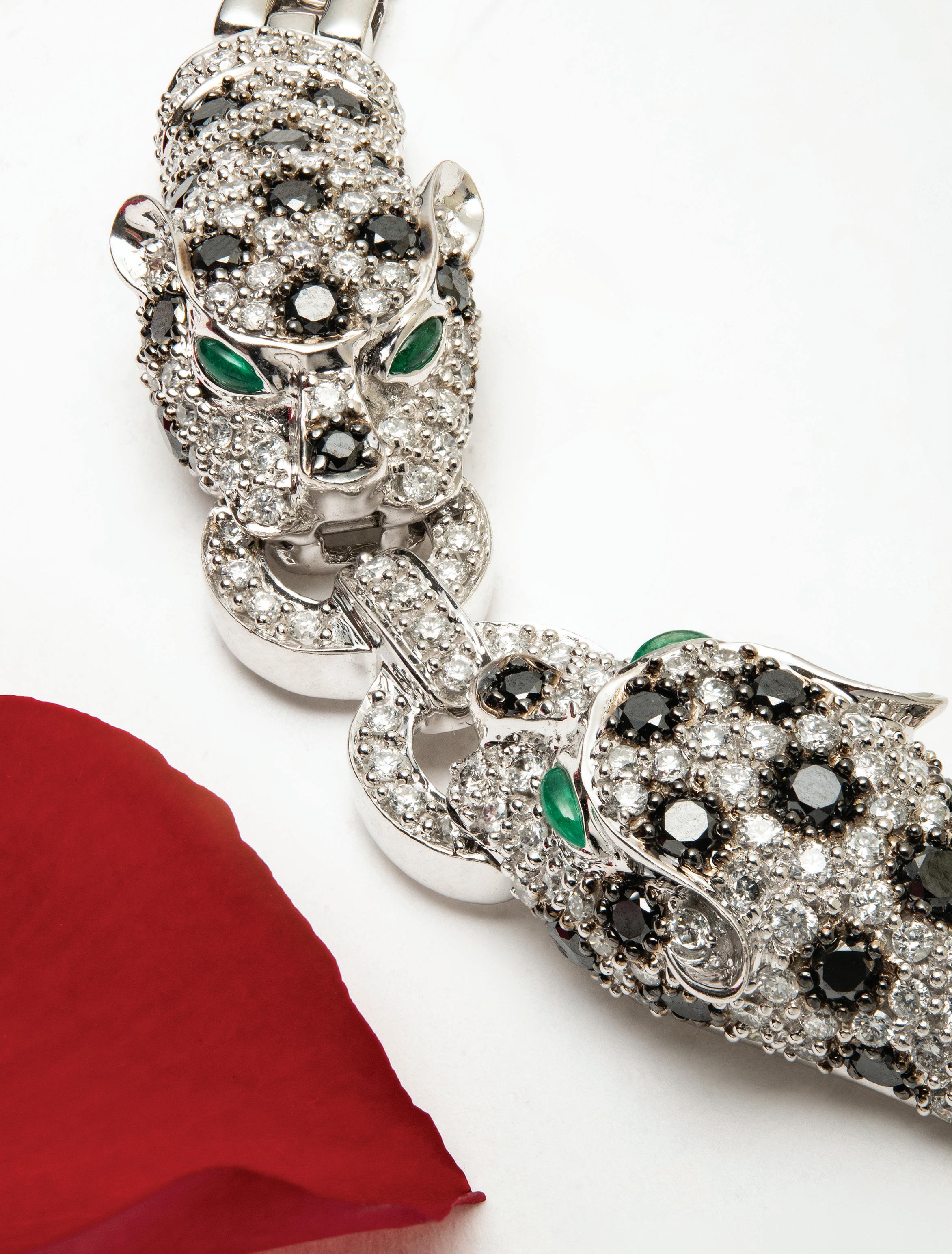 Sobresalen los lotes 28 al 52, que cuentan con certificados del Gemological Institute of America (GIA), garantía de autenticidad y calidad en cada gema. La colección también rinde homenaje al mundo animal a través de piezas llenas de carácter y belleza, destacando los lotes 59 y 60, Gargantilla y Par De Aretes con Esmeraldas, Moissanitas y Diamantes en Oro Blanco de 14K inspirados en la fuerza y elegancia de la pantera.