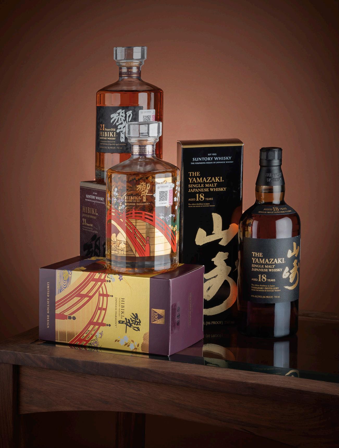 En la sección de destilados un Yamazaki 18 años, un whisky japonés de renombre internacional, galardonado como el mejor single malt japonés en los World Whiskies Awards, cuya maduración en barricas de Mizunara le confiere una complejidad y sofisticación únicas.