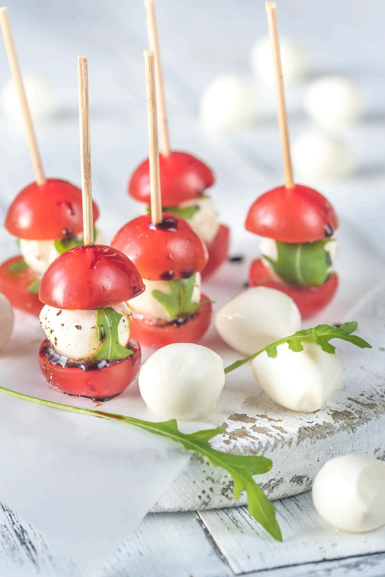 mozzarella skewers, smoked-Gruyere mushroom tarts, charcuterie board, smoked-French onion & creamy spinach dip, pita chips, cucumber rounds, carrot sticks, 59/88/132