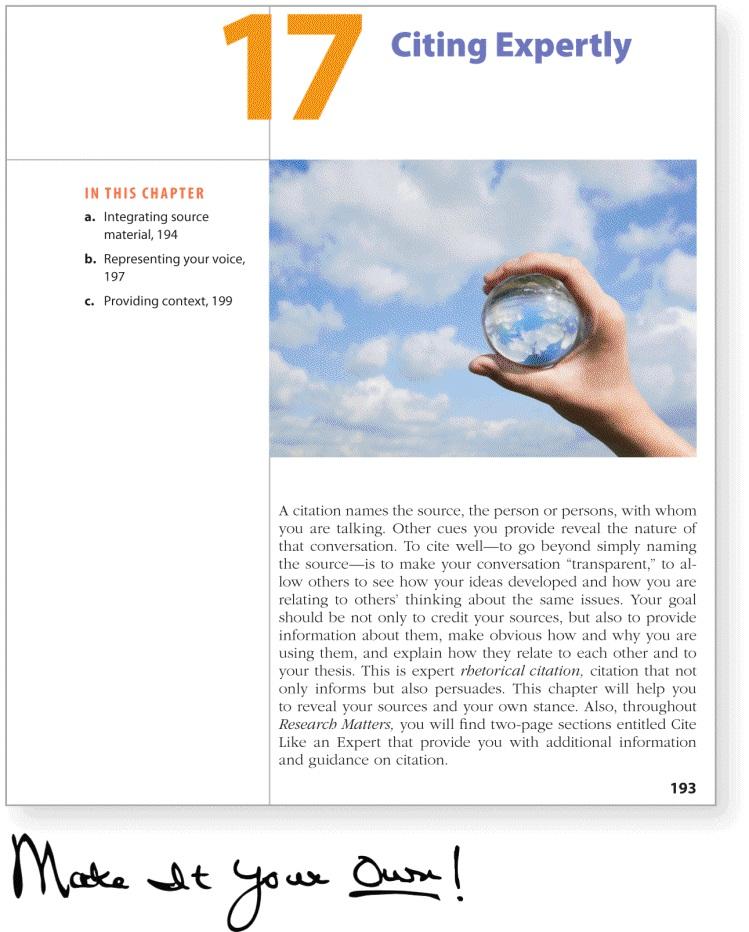 Cite Like an Expert: Explaining Your Choice of Sources 148 Part Three Organization Matters