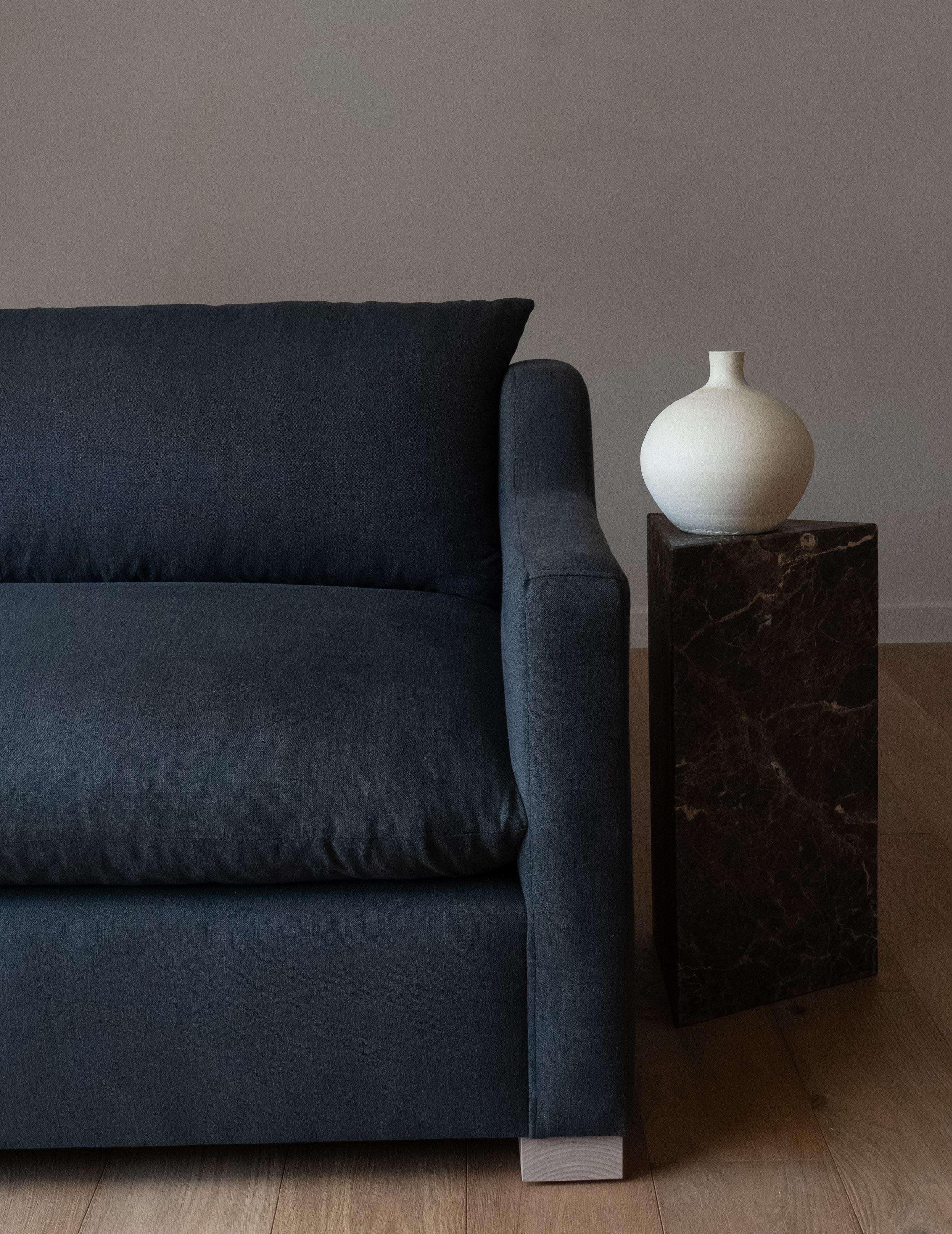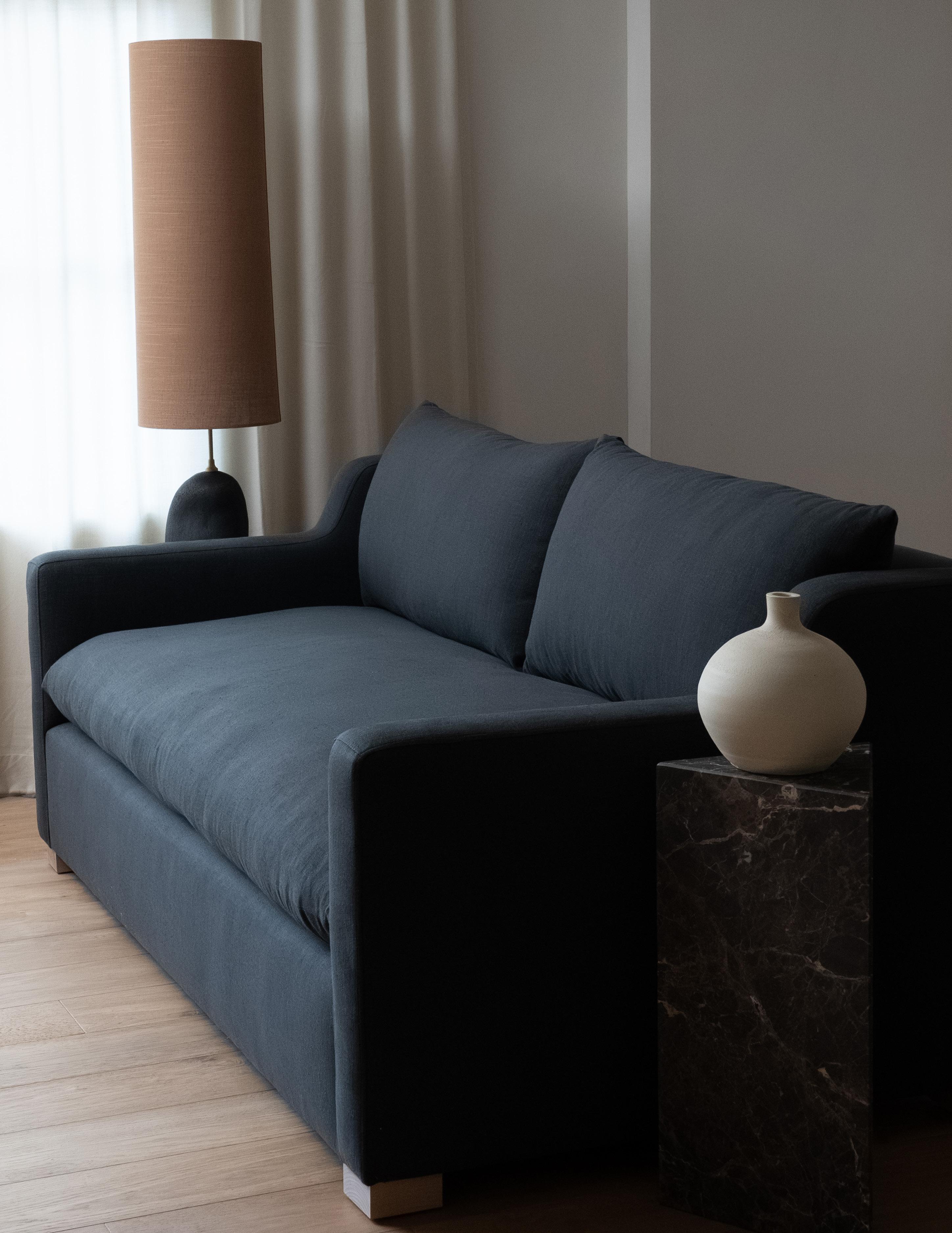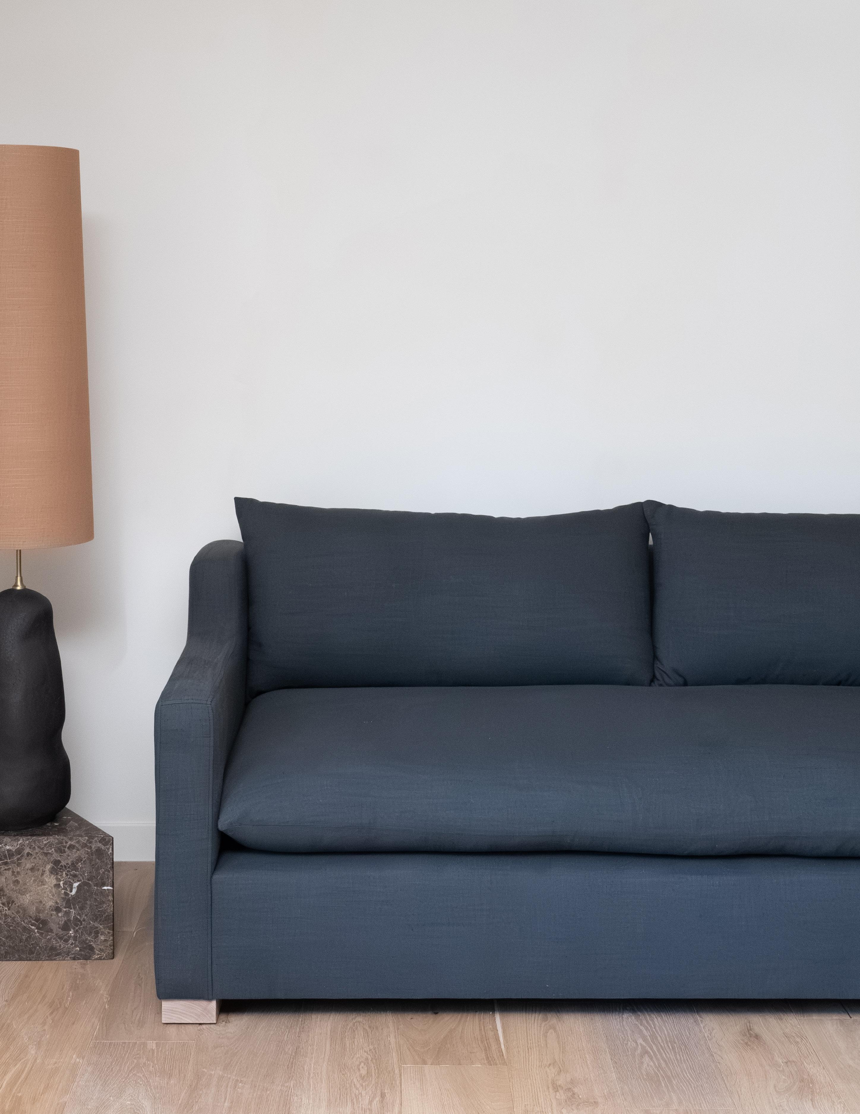 The George sofa features a tailored silhouette with structured track arms and a tight back. Understated and versatile, it brings a sense of ease while maintaining a clean, composed look.