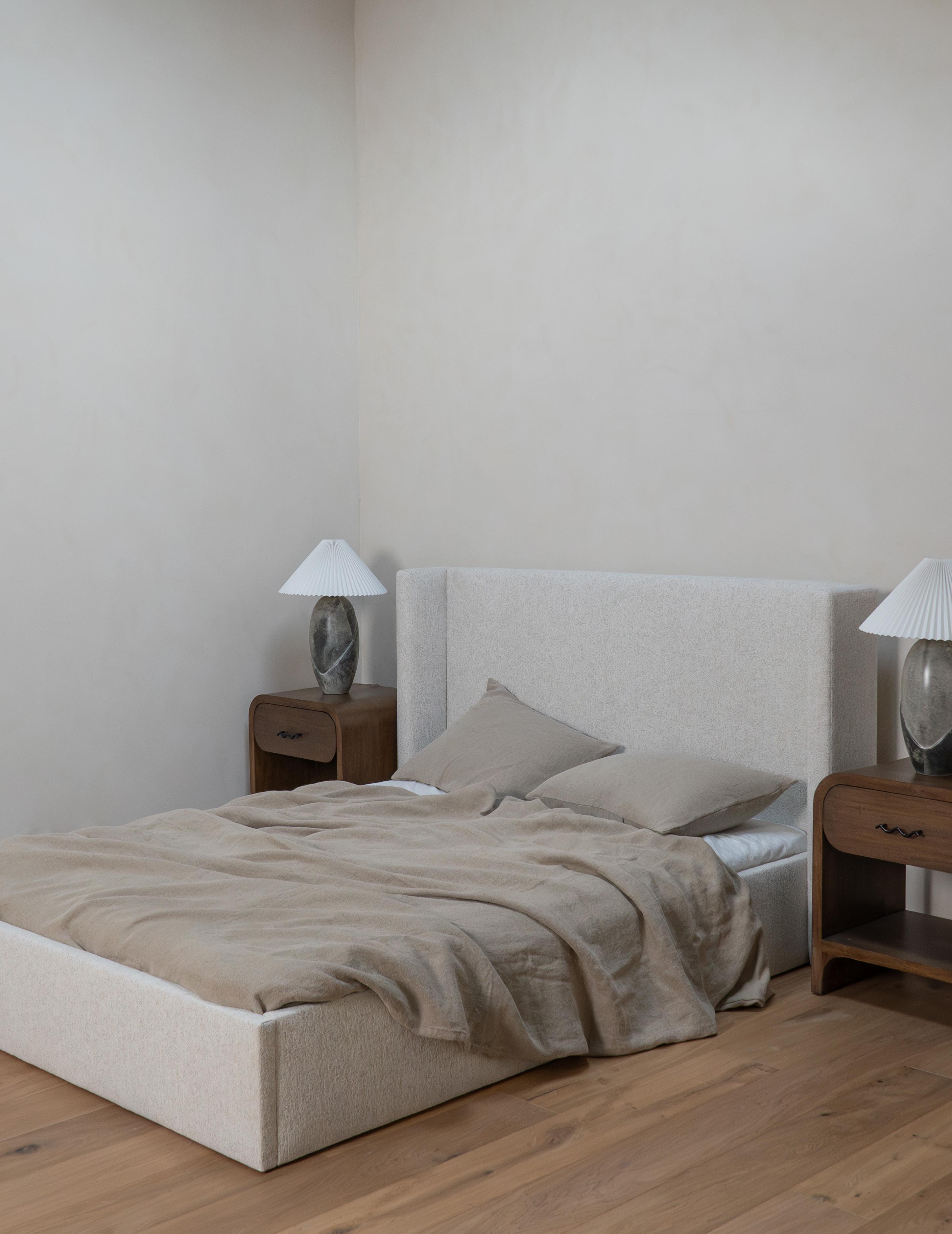The Detroit Bed is where modern minimalism meets sleek sophistication. Its simple low-profile headboard featuring rounded corners brings a contemporary vibe to any bedroom.