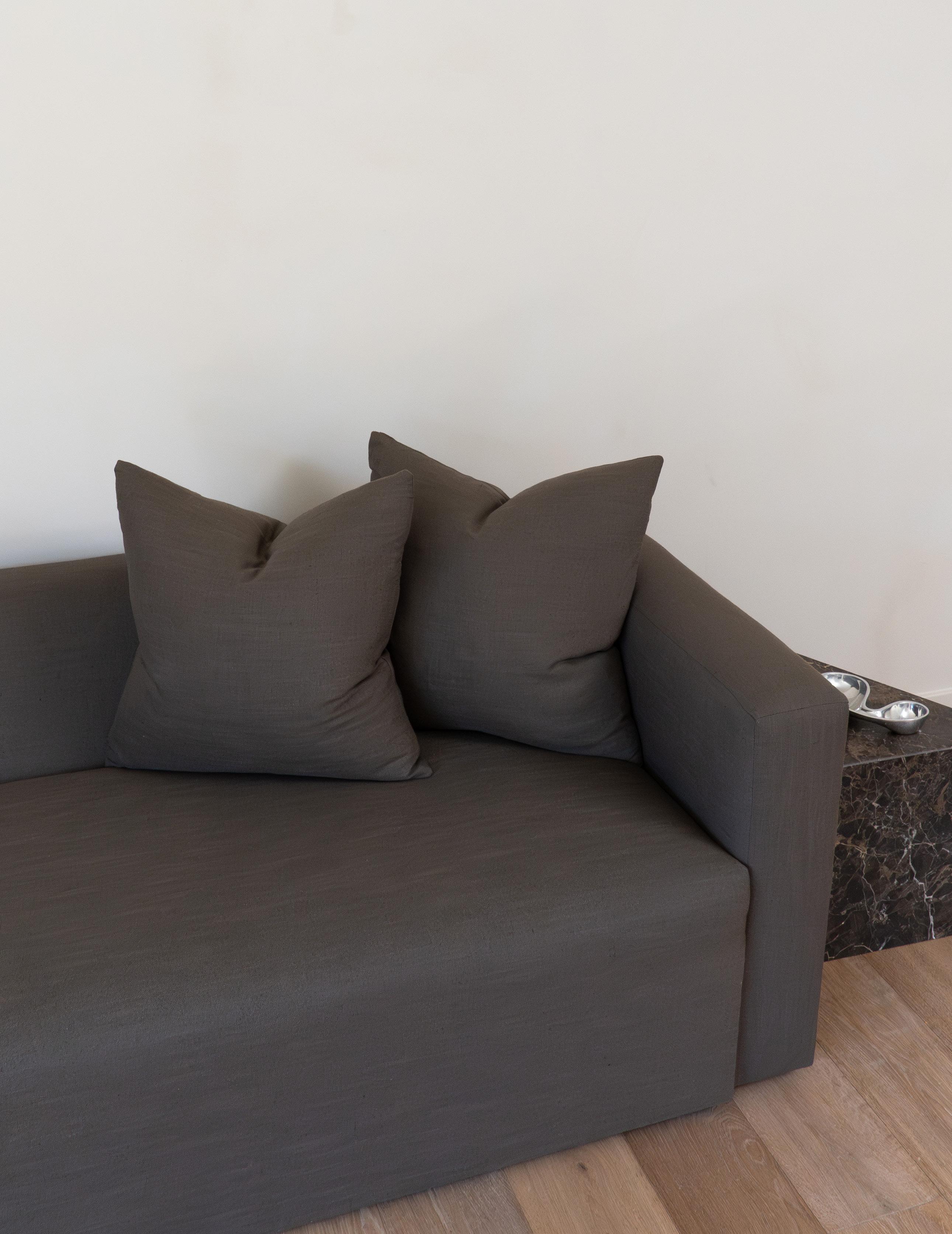 The Max sofa features a sleek, modern design with minimalist cushions and broad arms, offering both comfort and contemporary style. This sillouette is perfect for any living space, whether casual or sophisticated.