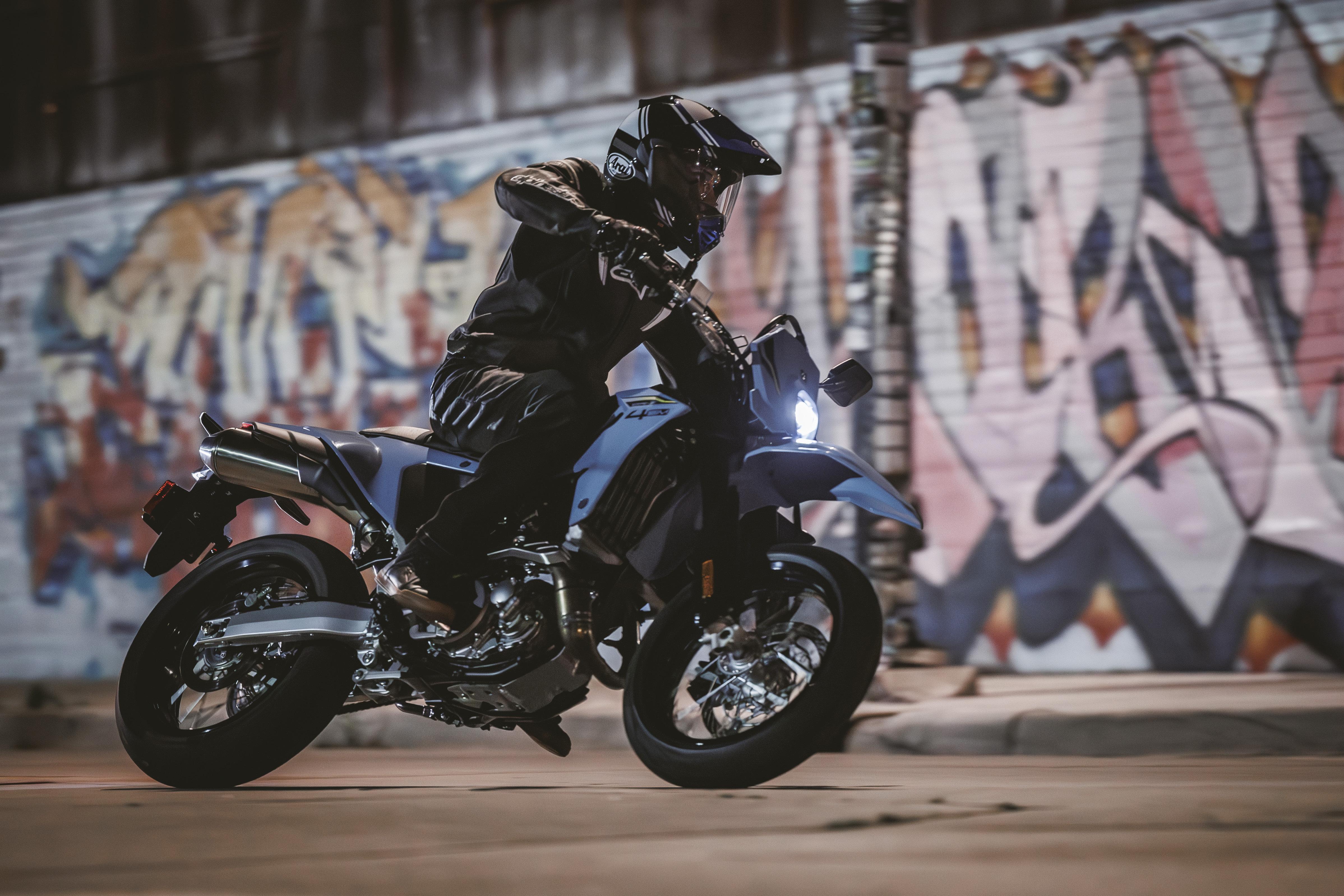 The DR-Z4SM lets you switch off ABS at the rear wheel, giving you the option to match your preferred control method when braking on gravel or other loose surfaces. Front ABS remains active full time.