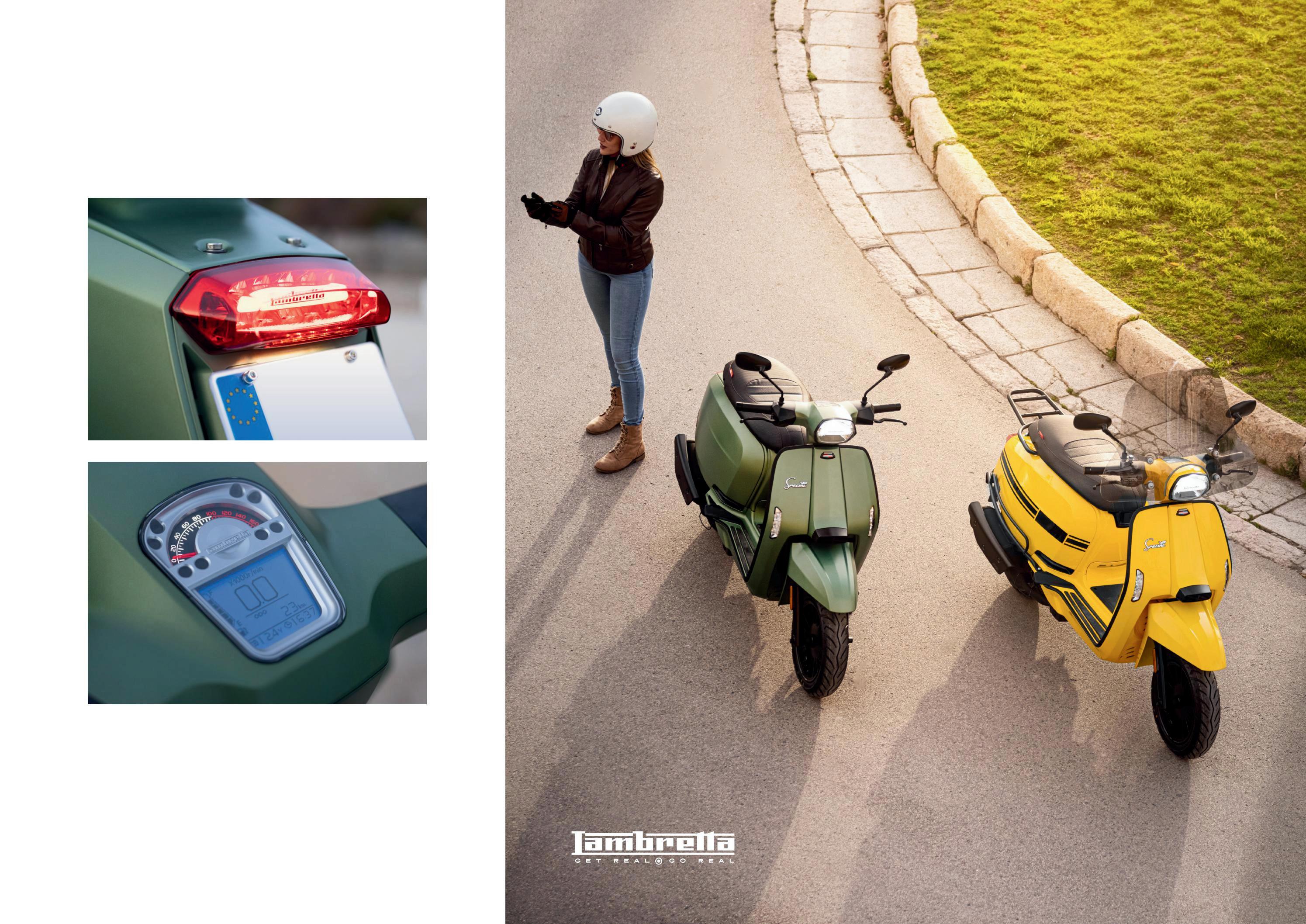 Die Lambretta GmbH behält sich das Recht vor, technische Daten, Ausstattungsmerkmale und Farben der in diesem Katalog beschriebenen Fahrzeuge jederzeit und ohne Vorankündigung zu ändern. Die abgebildeten Modelle dienen ausschliesslich zu Präsentationszwecken und stellen keine vertraglich zugesicherten Eigenschaften dar.