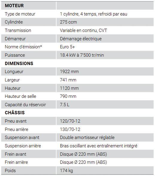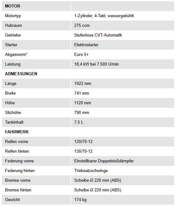 Flüssigkeitsgekühlter 275-cm³-Automatikmotor.