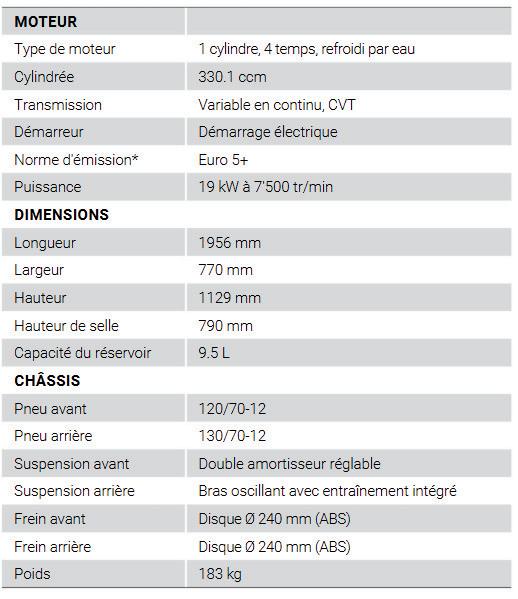 Moteur automatique 330 cm³ à refroidissement liquide.