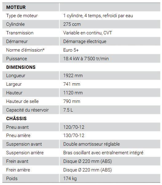 Moteur automatique 275 cm³ à refroidissement liquide.