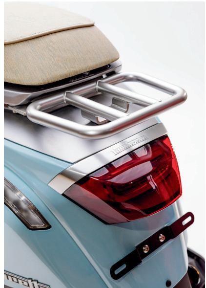 Les feux arrière LED, ornés du logo Lambretta, garantissent que la silhouette emblématique de la marque reste reconnaissable, même de nuit.