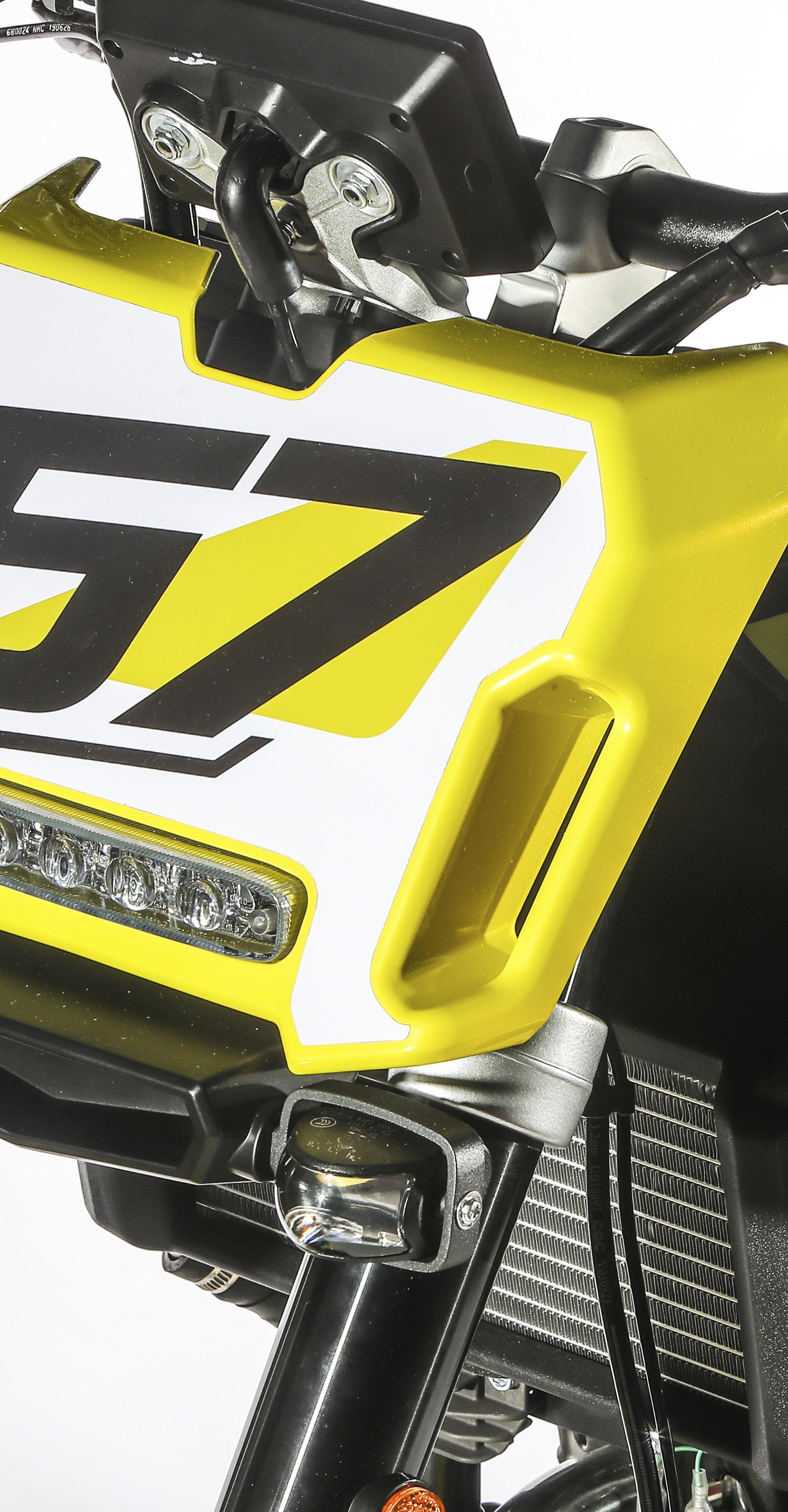 Emoción es más que una palabra cuando conduces PIEGA 452. Tanto si buscas una aventura de montaña como conducción urbana, esta moto sabe como subir la adrenalina. Cada detalle ha sido pensado para elevar su experiencia de conducción. Su frontal destaca por una óptica full led con una horquilla invertida dorada que la hace muy llamativa, y con unas llantas de aleación de 17” con una pinza Brembo que garantiza una frenada precisa y potente. ¡Tecnología y rendimiento al alcance de tu mano!