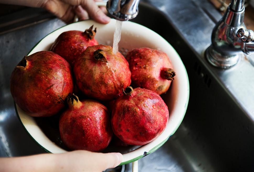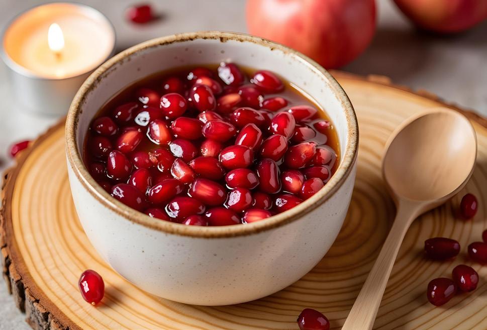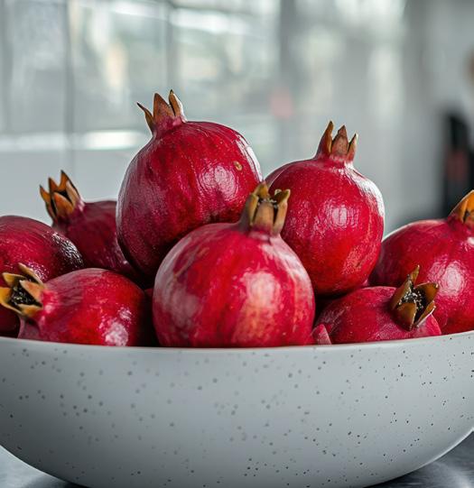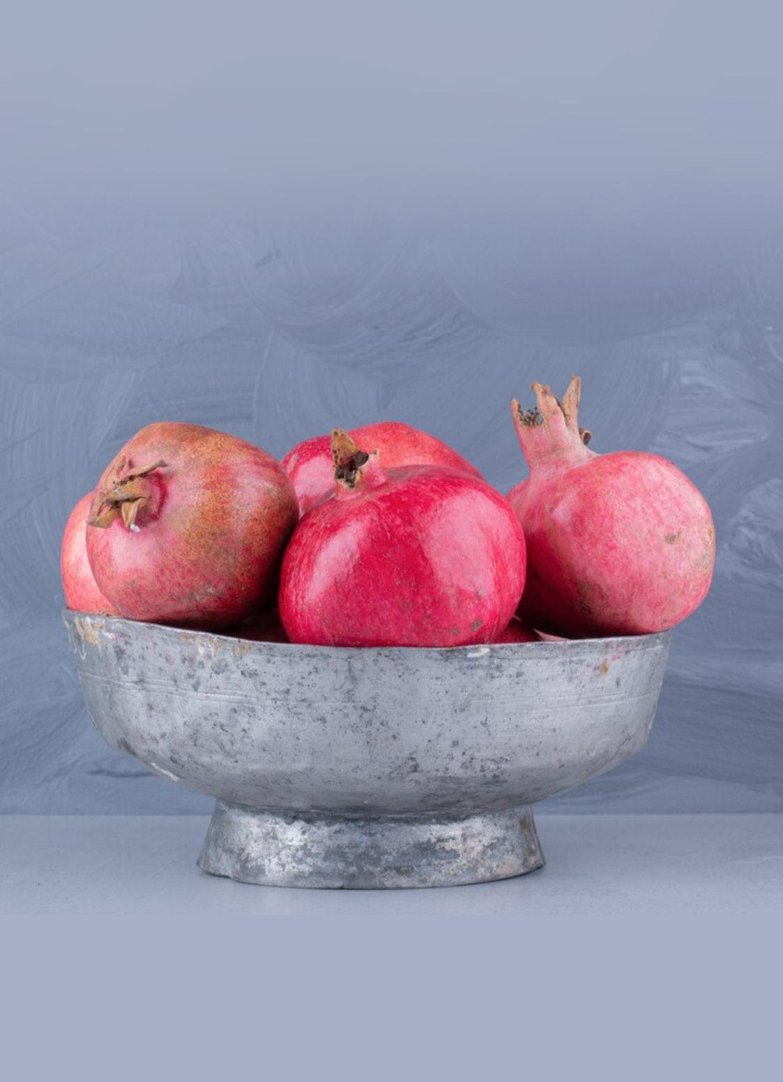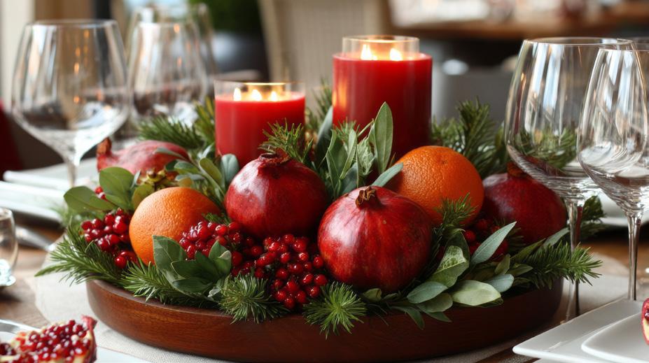Design cue: A bowl of pomegranates, citrus, or pears makes a stunning centerpiece — no florist required.