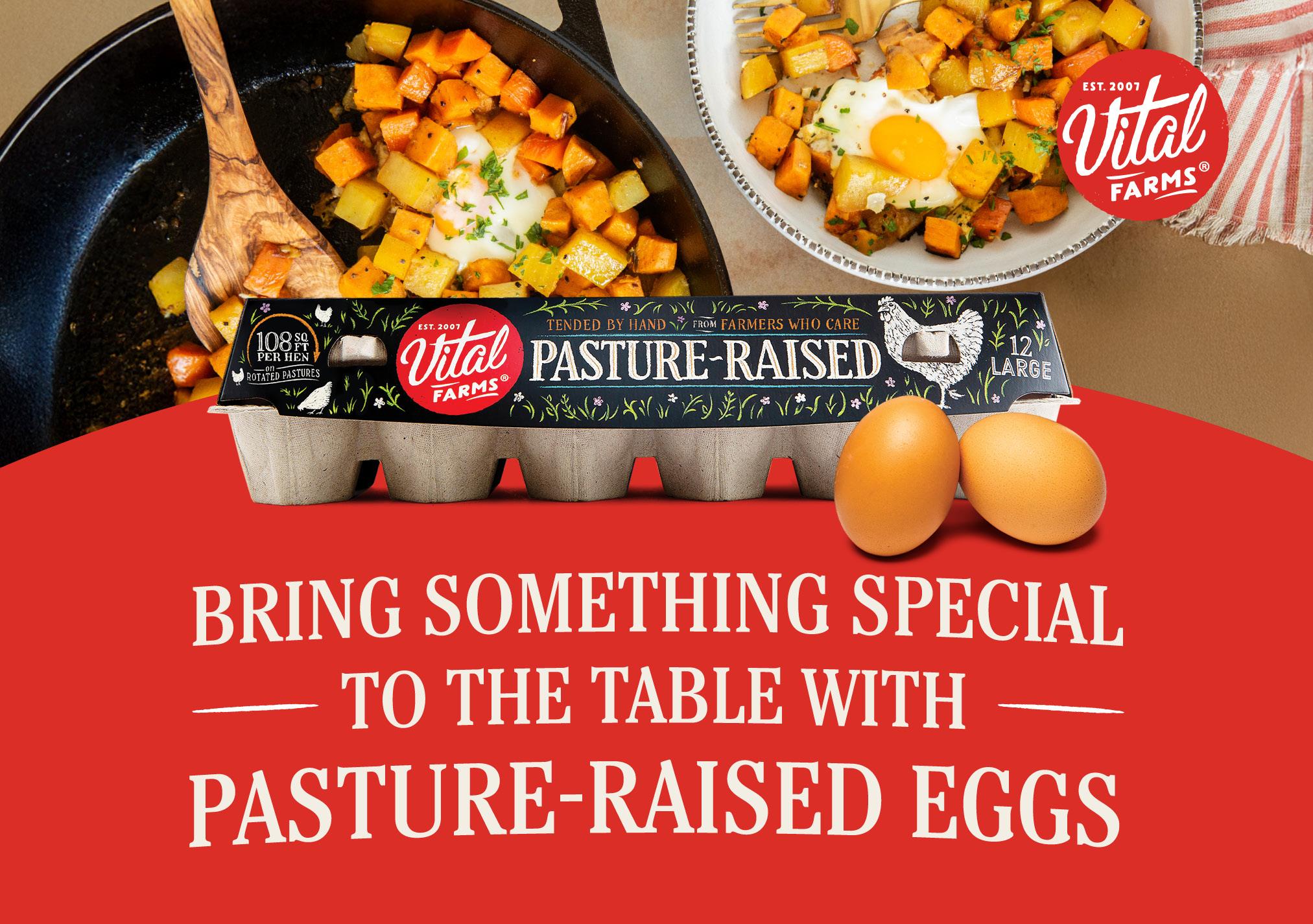 A true kitchen staple. Our cage-free, organic brown eggs are rich in flavor and essential for everything from breakfast bakes to decadent desserts. Use them in holiday quiches, homemade aioli, or your favorite cookie dough.