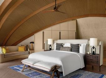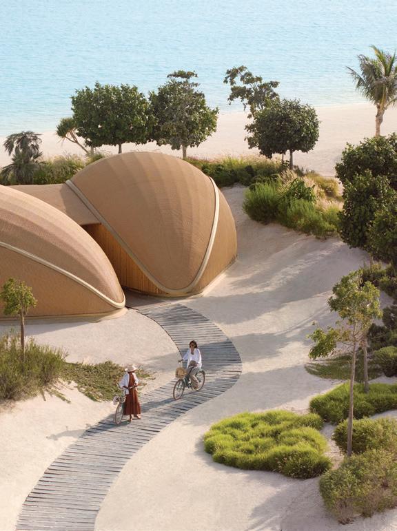 the island’s surroundings, with materials such as walnut wood, sandstone, and bronze used throughout. Artworks and accessories have been sourced from Curio, a platform representing more than 100 makers and artisans. The hotel’s event facilities can host up to 300 guests. It also has a spa, a gym that offers guests complimentary classes, a range of outdoor activities, and four dining venues.