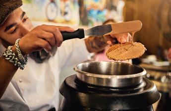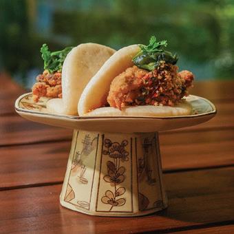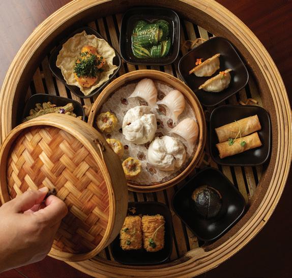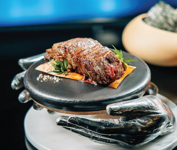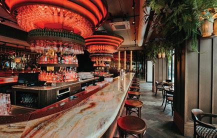 version of the original sauce to ensure it’s zero-proof, it’s no less impressive. The rest of the menu dances out in hearty, difficult-toresist combinations each good enough to make you want to ignore the calorie counts that taunt you throughout the menu: the perfectlycooked duck fat-laden roasted Potatoes Louie; the buttery and garlicky Jumbo Shrimp Scampi; the juicy Mario’s Meatballs; and a whole Branzino that is a quiet star with its tender, flakey meat and delicately crisp skin, served with just the right amount of Italian flag sauce. Your struggle here will be in making sure you leave room for dessert, with ten options including a sculptural carrot cake, Nutella tiramisu, crumbly tarts, and a silky lemon cheesecake to choose from. Wash it all down with expertly-crafted mocktails that go well beyond the standard.