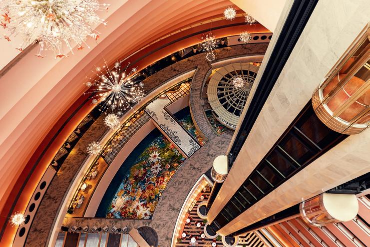 The soaring atrium by architect John Portman gives futuristic Bladerunner-meets-Guggenheim vibes as you peer up at the fan-shaped ceiling – a nod to the brand’s unmistakeable symbol.