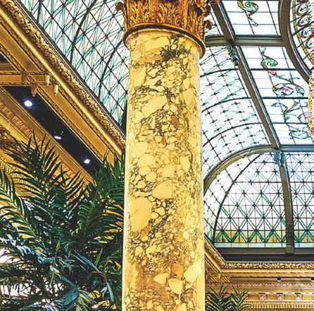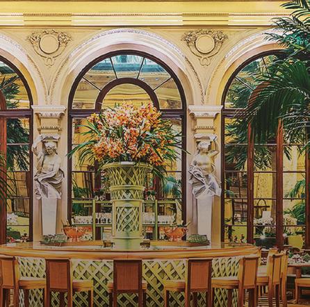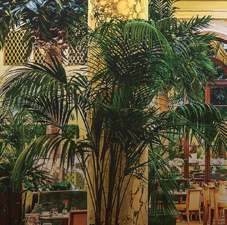 ‘Soaring columns and towering trees add drama to the Palm Court, which is topped with an intricate glass roof’