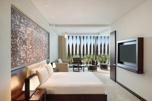 The suites also come with a stylish lacquered drinks cabinet complete with bar sets for crafting beverages, as well as a water purifier, high-speed internet, and lavish Malin + Goetz bathroom products.