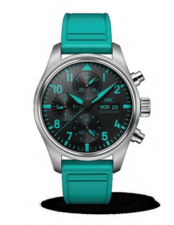 Back in 2017, when Roger Dubuis unveiled its new partnership with Lamborghini, ex pectations soared. The Italian car manu facturer doesn’t take collaborations lightly and neither does the Geneva-based watch maker. This roaring combination captures the engineering brilliance and sporting spirit of the Lamborghini Huracan Super Trofeo EVO 2 racing car, which was created to compete in all three continental Lambo rghini series races of the 2022 season. The new limited-edition timepiece is part of an ongoing collaboration with the Italian su percar’s Squadra Corse. A rotor is designed to mimic the car’s engine and wheel trims. The strap on this timepiece is also a com bination of rubber and Alcantara, with the inner lining featuring the Pirelli P Zero Tro feo R pattern – another stellar brand that Roger Dubuis has collaborated with previ ously. Price on request.