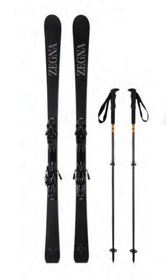 Hit the slopes stealth-style on your next winter escape with the Zegna Zai Edition Ski and Poles set. Designed using the high est quality materials and simple elegance, ensuring stability and movement when on the slopes for control at all speeds. Com plete with adjustable light carbon ski poles, the set is signed off with the Zegna logo in all black for a stylish, understated upgrade to your next ski trip to the Alps, making as much a unique display piece in the chalet as racing the slopes. Dhs27,695 Zegna