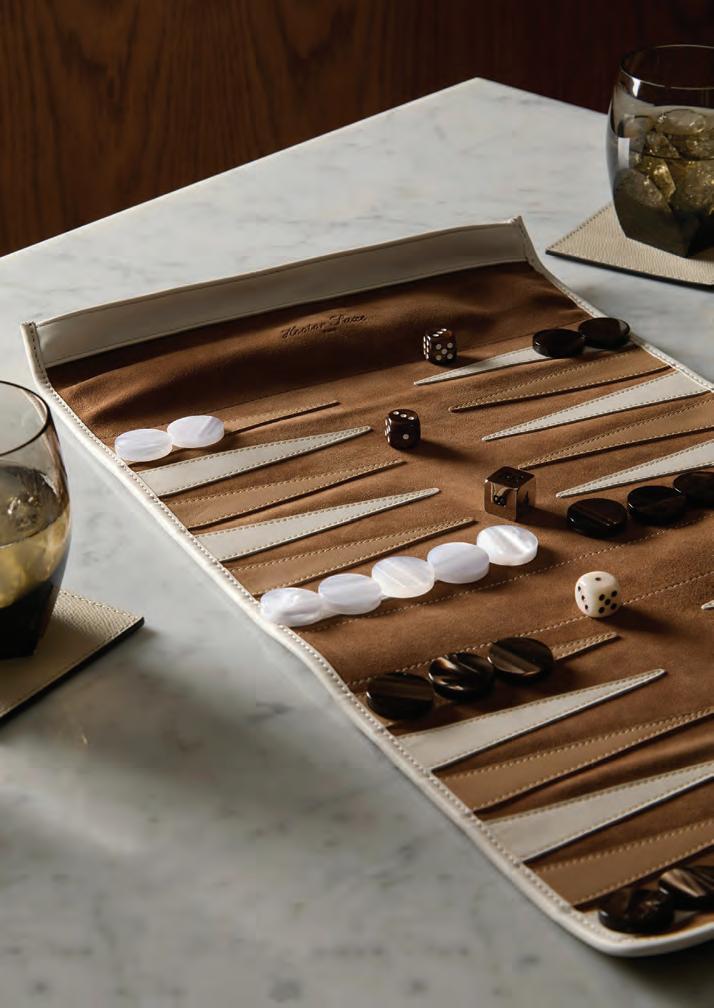 This small roll from Hector Saxe is handcrafted in France from velvet leather with a coordinating interior inlay. Inside, you’ll find everything you need for a competitive late-night game, whether you’re at home or on the go. Dhs2,241 Hector Saxe available at ABASK.com