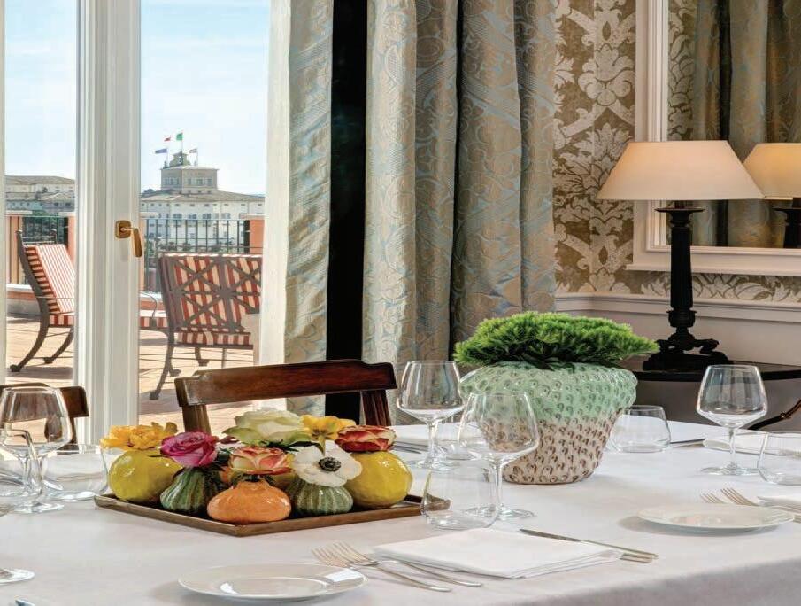 the surrounding area, but dining at the hotel also offers several distinct experiences. Café Ginori, a collaboration with the storied Ginori 1735 porcelain house, presents a space where heritage craftsmanship collides with contemporary Italian cuisine. Dishes are as aesthetically pleasing as their plates, as guests dine surrounded by exquisite tableware from one of Italy’s most celebrated makers. Meanwhile, Mosaico, the hotel’s elegant courtyard restaurant, provides an atmospheric setting beneath stylish umbrellas and soft evening lighting, where Italian classics are executed with precision. It’s also where you’ll enjoy a delightful breakfast of continental buffet and a la carte dishes.