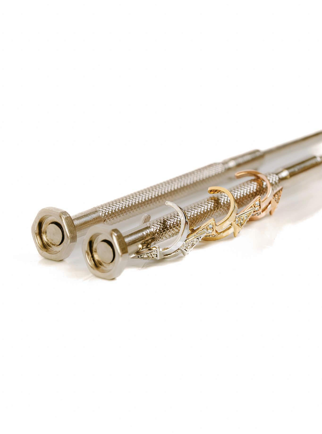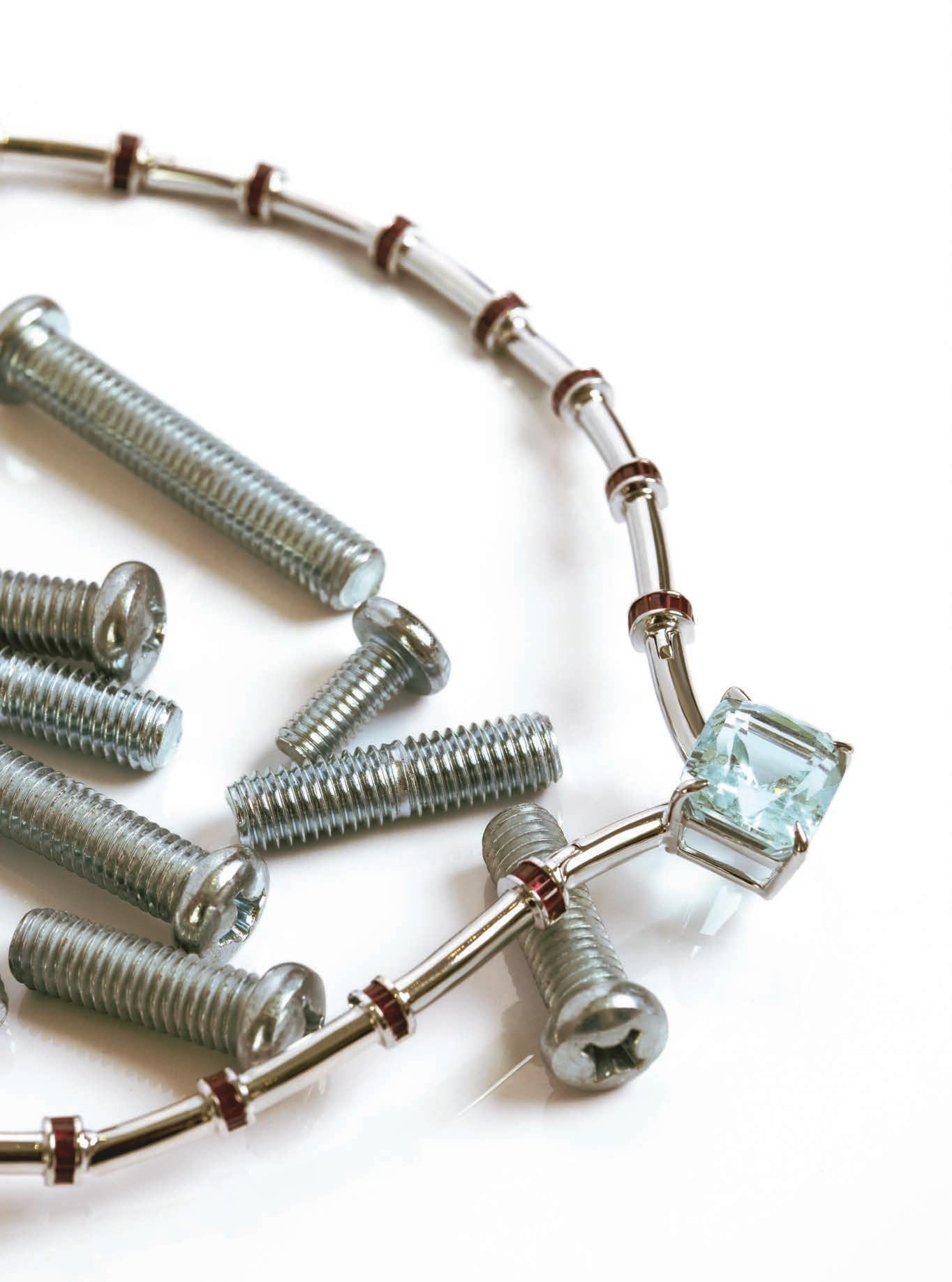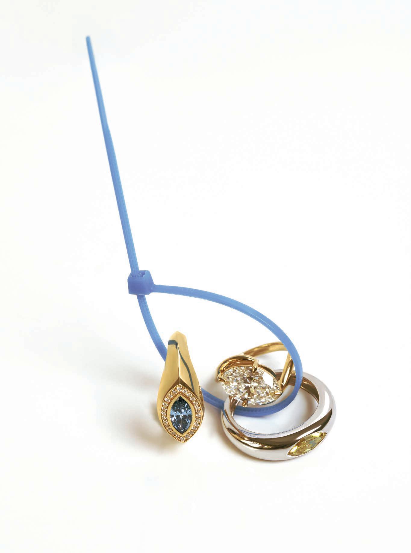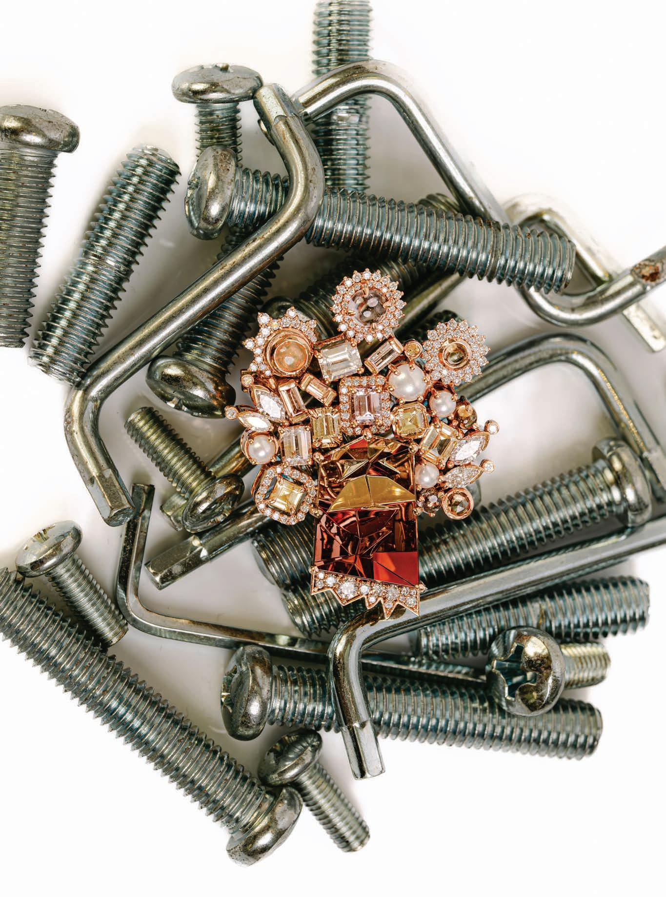 nose pieces and chains that rearrange how jewellery sits on the body. Her references swing from temple jewellery and South Indian bridal adornment to street style and surrealism, which is why a lot of pieces feel both ancestral and alien. Her work stands out because it’s instantly recognisable –more attitude than ornament, more character than “pretty.” @bhavyarameshjewelry
