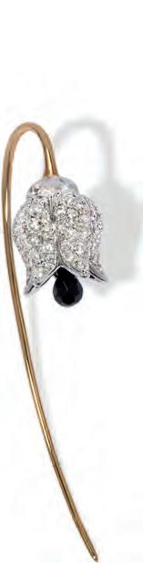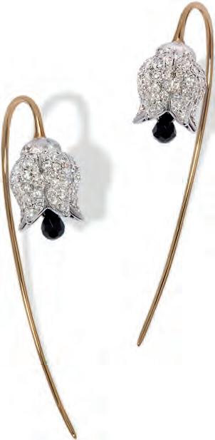 Left page: Jean Schlumberger by Tiffany Flame Earrings and Hands Necklace in Yellow Gold and Platinum with Diamonds; ALL TIFFANY & CO. Top: Staud available at THAT Concept Store; Top left: Cartier Clash de Cartier Rings; Top right: Louis Vuitton Capucines Nano