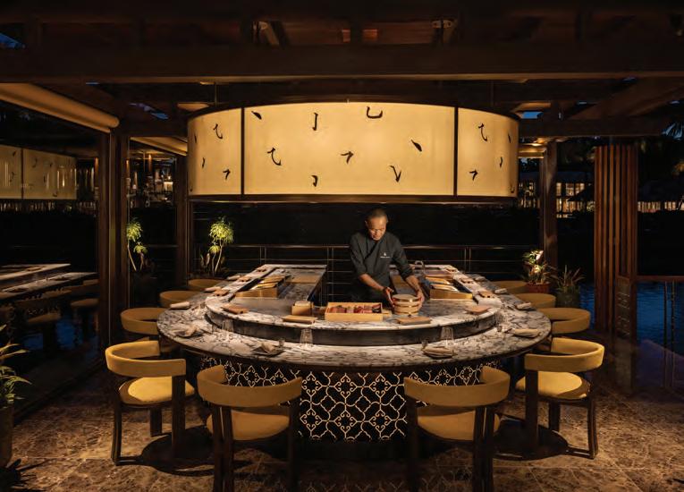 The food is the real star of this Four Seasons outpost, with every single restaurant seemingly outdoing the other. Six different styles of cuisines are on offer at the resort and they deftly encapsulate the multicultural country and the world. Every chef is warm, involved in everything from plating to service, and committed to showcasing the best possible version of the cuisine they look after. At Angara, the Indian restaurant adorned with motifs reminiscent of the country’s palaces, the vibrant Chef Saravana offers two distinct menus and allows a coin flip to decide the fate the diners will experience each day – a traditional share plates assortment called the Royal Experience, and a modernised Fine menu. While the former