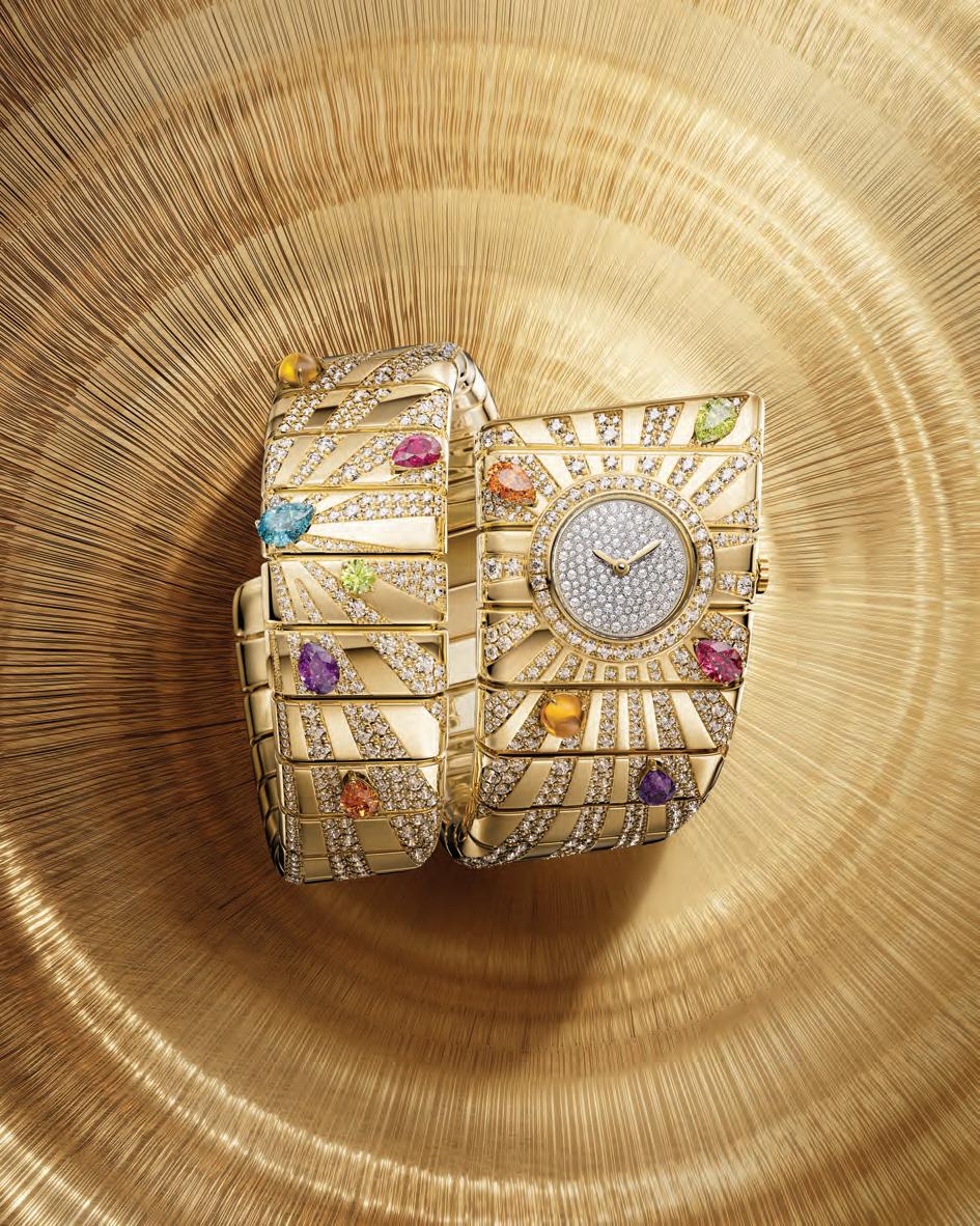 Recently unveiled at LVMH Watch Week, the new Tubogas Manchette timepiece by Bvlgari is a horological manifestation of so many of the brand’s areas of expertise. The malleable nature of its tubogas construction, perfected by the house in the 1940s, its 70s-tinged take on the signature serpentine style, and the smattering of the brand’s beloved bold colourful gemstones across the watch – backlit by rays of diamonds – make this piece infinitely evergreen.
