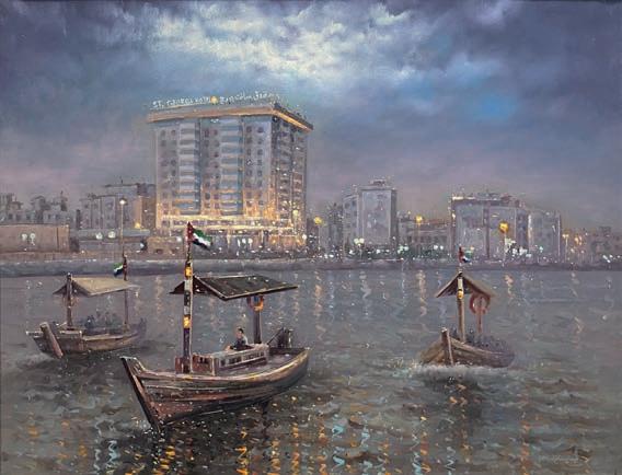 Then there was Faten Ebrahim Mattar, a sixthgeneration natural pearl merchant from Mattar Jewelers, carrying on a hundred-andseventy-year family legacy. We took a tour around her humble office as she walked us through her treasured collection. There are twelve colours of natural pearls, she told us – not just white and cream, but rose and gold, silver and black. A single two-strand necklace of round pearls can take ten to twenty years to complete, because the rarity of finding a pearl between three and five millimetres is one in ten thousand. As a finale, she brought out her 4.2-kilogram hoard of pearls bundled in the Mattar Jewel’s signature red cloth and secured with a silk thread. It hard to conceptualise how many generations of Mattars sat exactly where we were and felt the weight of this same red bundle in their hands.