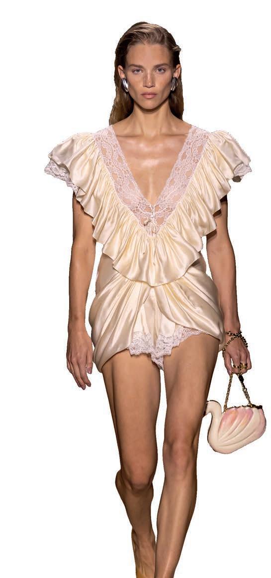 This new wave of viral scents is less about making a statement and more about pleasuredriven perfumery, fragrances chosen for how they make you feel rather than who you’re wearing them for. And there’s an undeniable sense of escapism at play, where perfume serves as a small, everyday luxury. A sensory treat that mirrors the cosy rituals we turn to for comfort, whether that’s sliding on some silk pyjamas, journaling at night, or lighting a candle at dusk. These scents appeal to a universal longing for warmth, softness, and indulgence, with delectable gourmands that smell good enough to eat and sheer, dewy florals that melt into the skin like a cherished memory.