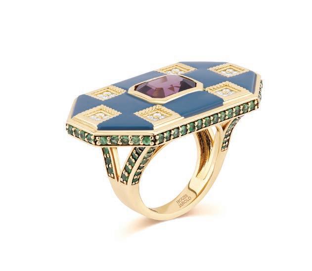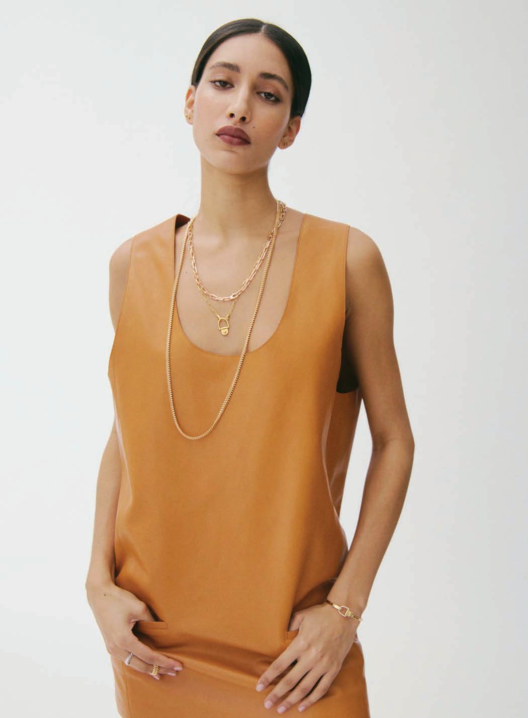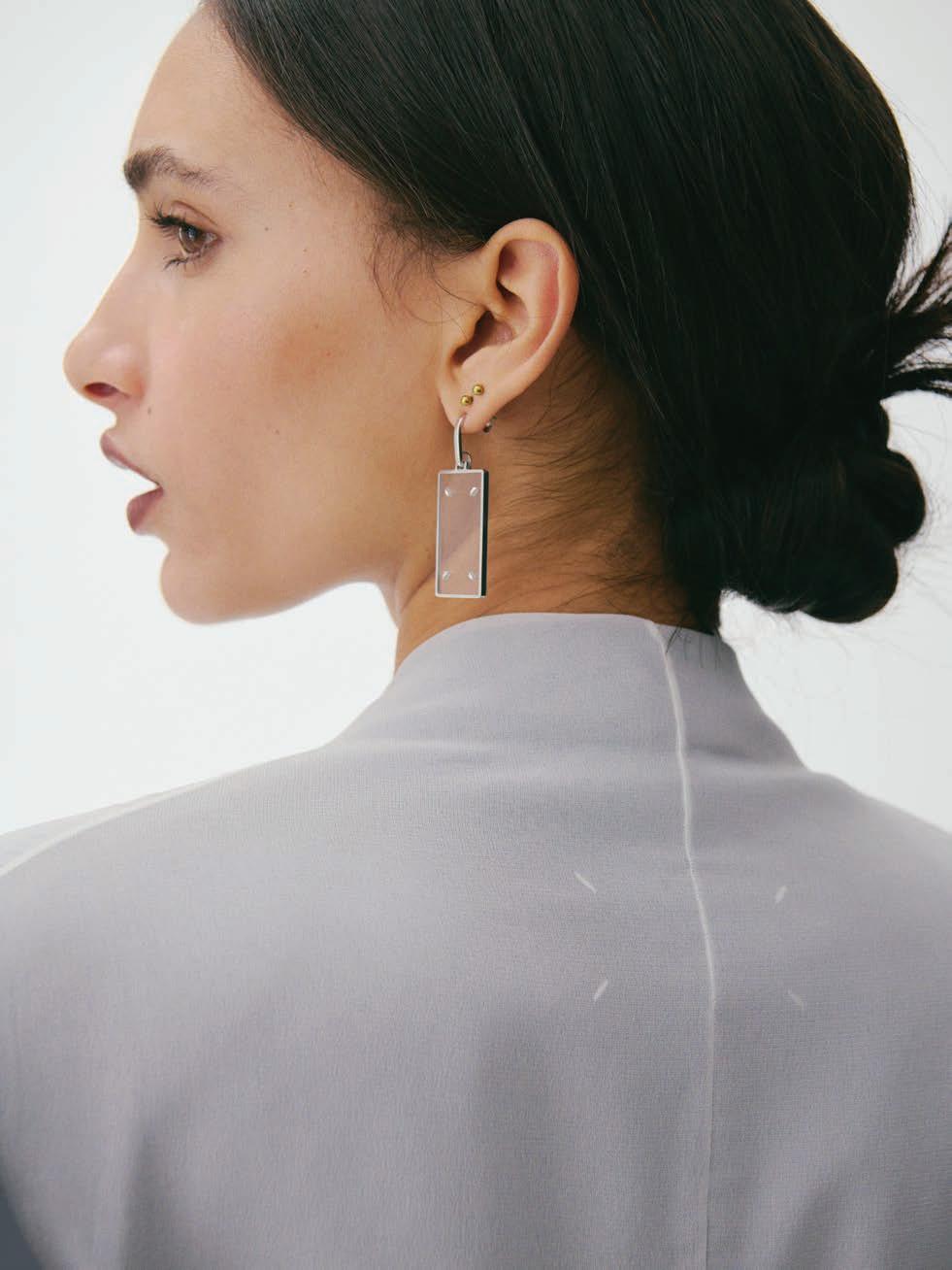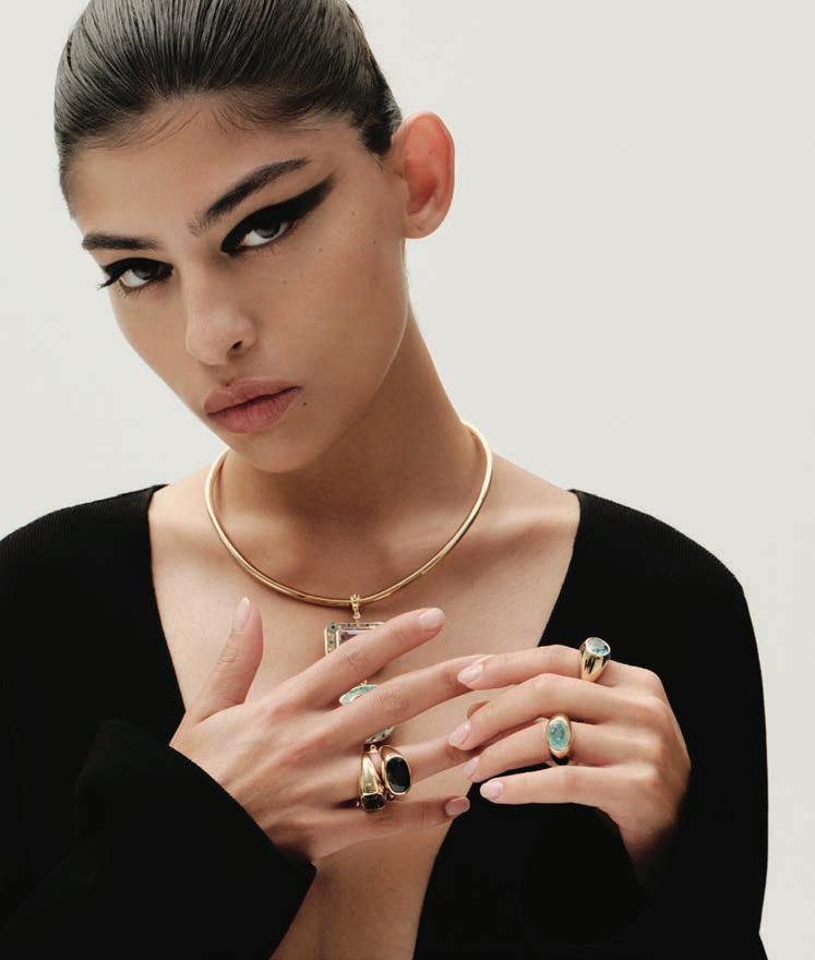 Previous page: Courrèges jacket and skirt available at Bloomingdale’s Middle East; Top left: Total Look Céline; Top right: House Janolo The Arrow-Head Rings