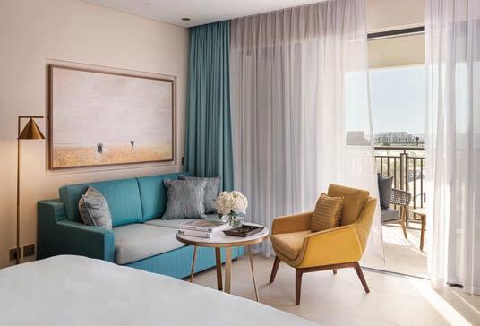 The resort’s decor draws from flowing waters and the ripples of the Arabian Gulf. Guests are welcomed with blue hues and a prismatic mother-of-pearl lighting installation suspended from the ceiling. The sandy shades of the landscape are incorporated into floors, panels and furniture. Intricate stone carvings in arched hallways and doorways resemble the architectural styles of Bahrain’s streets and forts. The design also pays homage to the country’s fishermen and their boats, which can often be spotted sailing past in the distance. There are 196 rooms and suites spread across the property, from Deluxe Rooms to the 200-square-metre Royal Suite, each with contemporary designs incorporating accents of blue and local textiles. The Gulf Summer House Arabian Suite with Private Pool spans 170 square metres of indoor-outdoor living. Beautiful abodes, but what lingers is something harder to name. It’s the way the resort effortlessly carries the memory of what this coastline has always been that quietly acknowledges that refinement – at its best – is simply paying attention to where you come from.